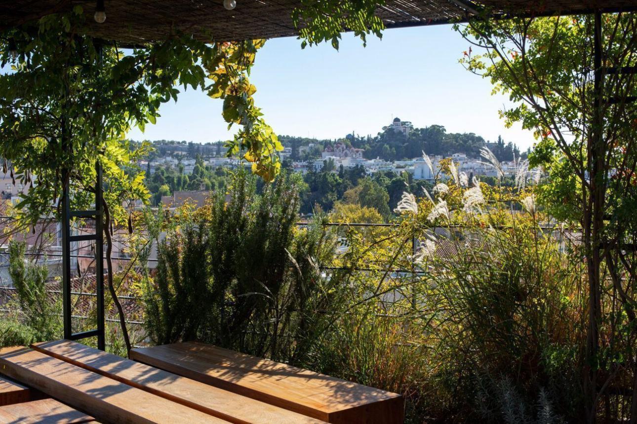 Ένα «κρυμμένο» μυστικό στην κορυφή ενός κτιρίου του 1930, το οποίο «κουβαλά» μνήμες από μια άλλη Αθήνα. Ανεβαίνοντας στο roof garden θα χαθείτε στο παραδεισένιο σκηνικό με δένδρα και φυτά να καδράρουν σημεία της πόλης, ενώ βότανα μοσχοβολούν ολόγυρά σας. Στον κήπο υπάρχουν πάνω από 30 διαφορετικά φυτά, δένδρα και βότανα. Η ταράτσα έχει σχεδιαστεί με τέτοιο τρόπο ώστε να προσφέρει την αίσθηση που δημιουργεί ένας κήπος. Χαλάρωση και ξεγνοιασιά!