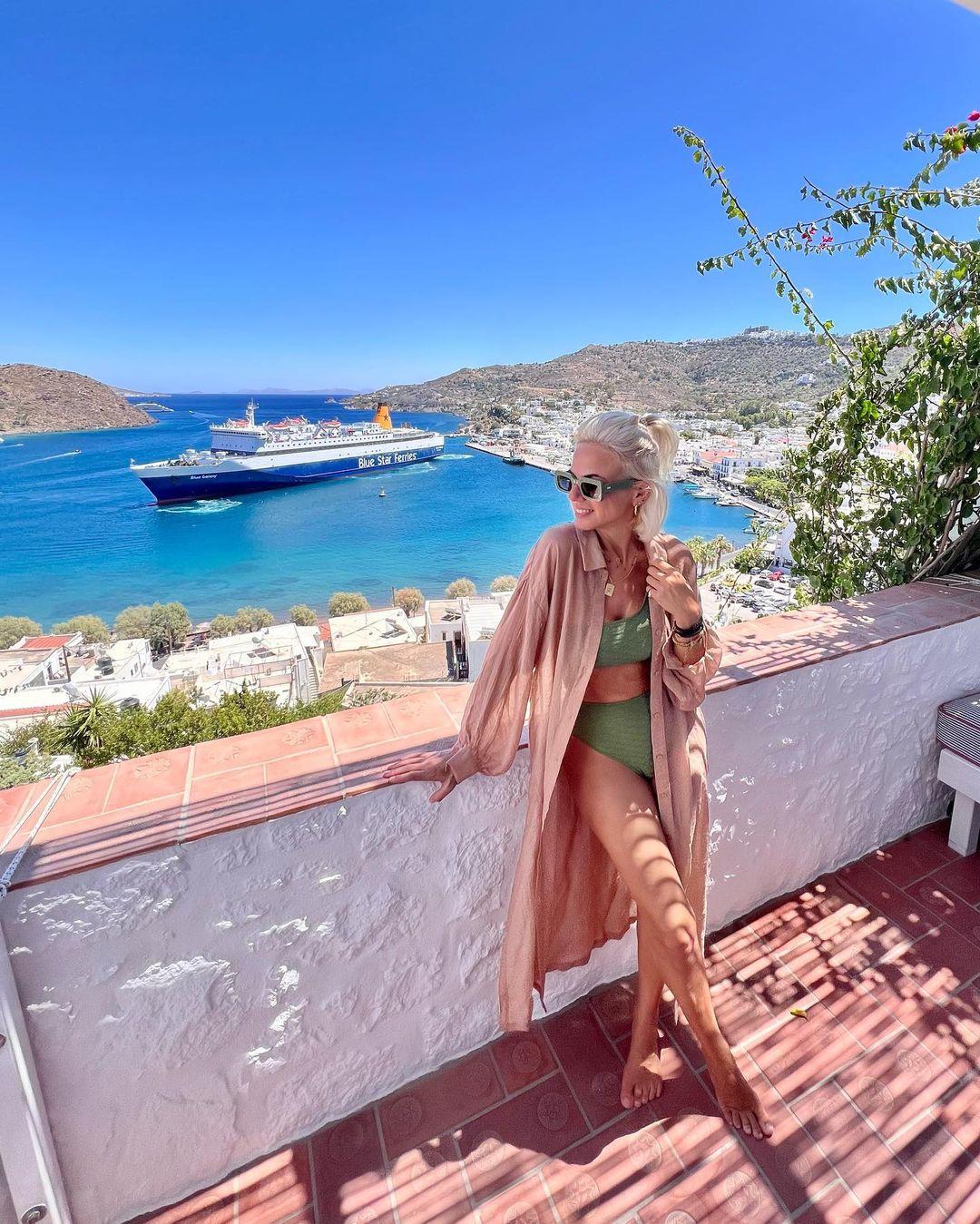 H Χριστίνα Κοντοβά δημοσίευσε μια σειρά φωτογραφιών από την Πάτμο όπου ποζάρει με ένα super chic καλοκαιρινό look.
