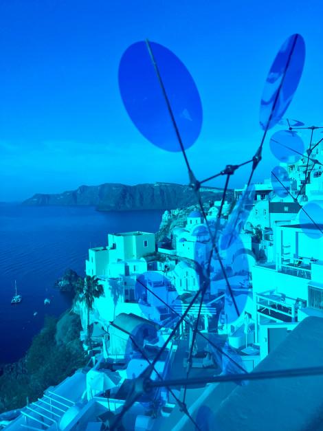 Γιατί ο γαλάζιος ουρανός της Σαντορίνης γέμισε με μπλε δίσκους;