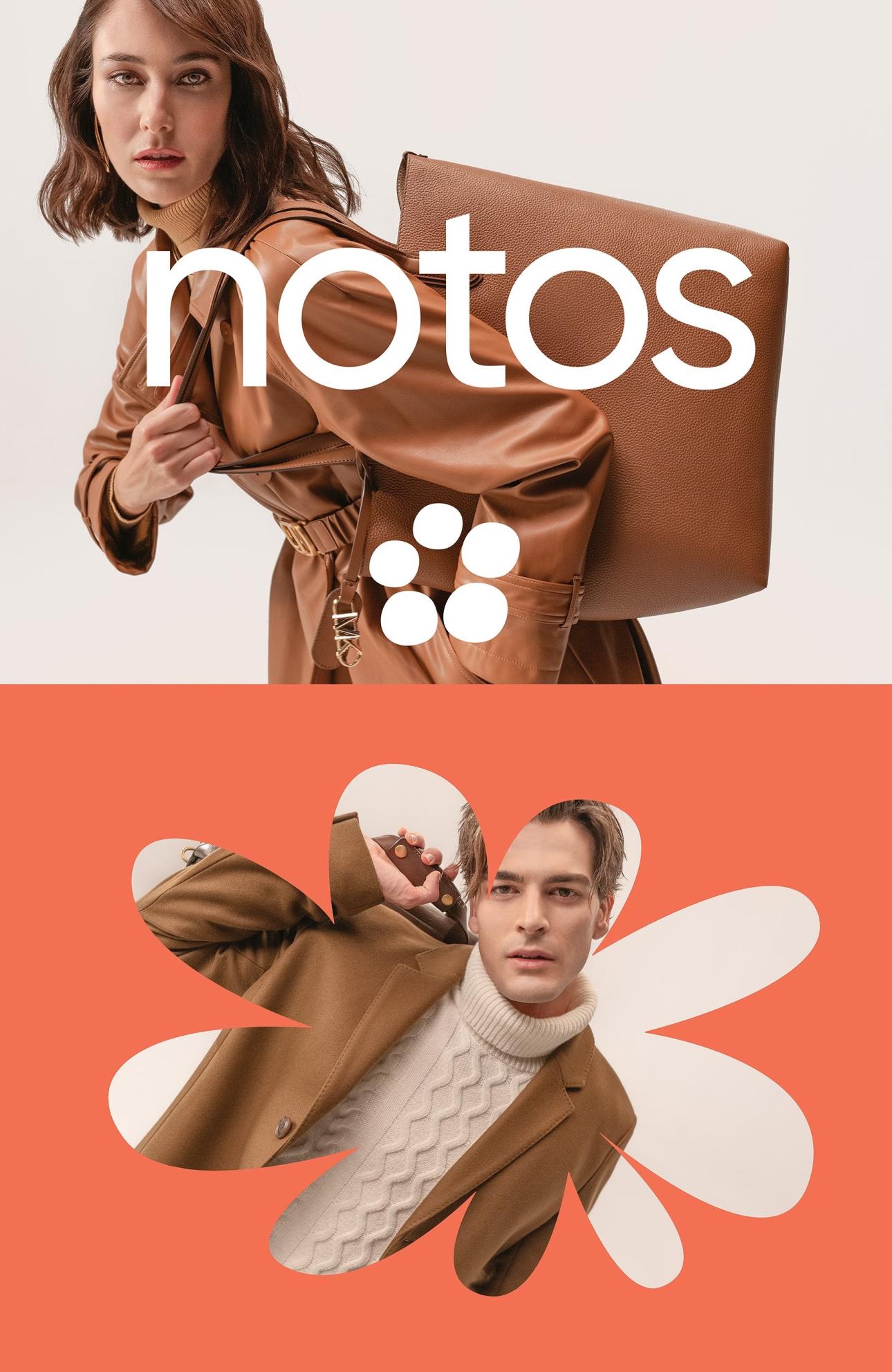 Η νέα εταιρική ταυτότητα εφαρμόζεται σε όλο το εύρος της επικοινωνίας, μέσω της οποίας τα πολυκαταστήματα notos αποκαλύπτουν το νέο look & feel, το διευρυμένο, σε brands & style portfolio και τη συνολική αγοραστική σύγχρονη εμπειρία που οι καταναλωτές θα έχουν στα φυσικά πολυκαταστήματα & στο notos.gr.