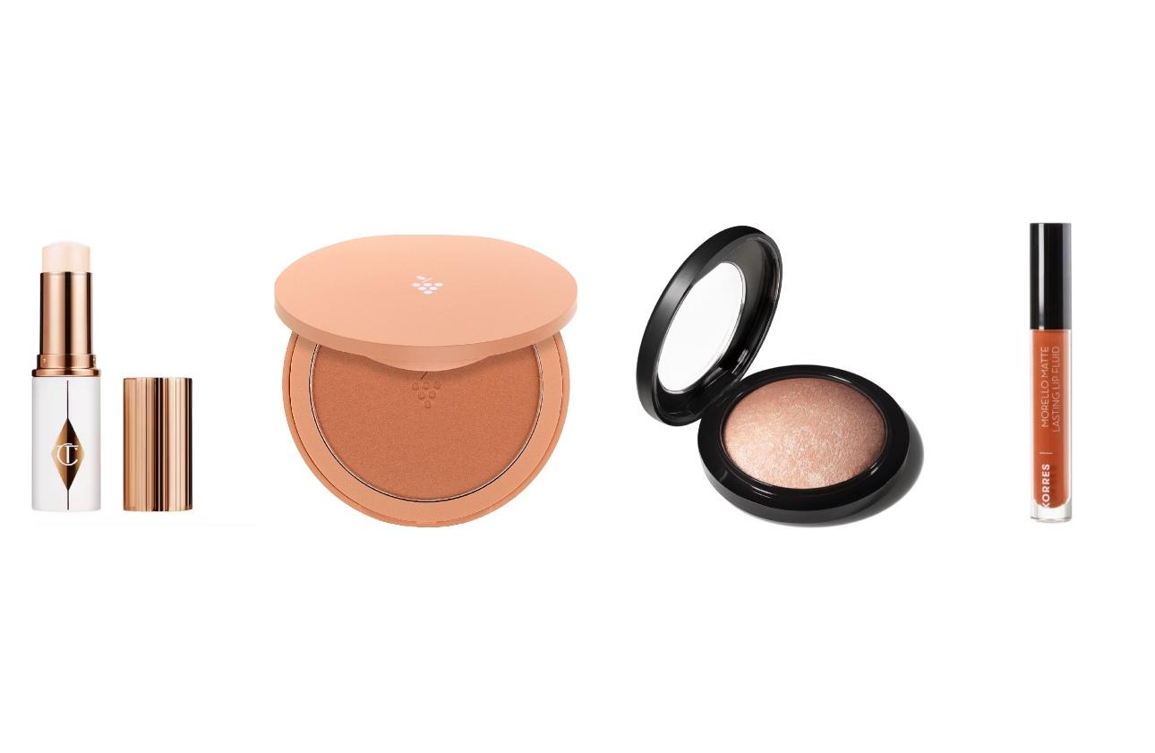 Τοποθετήστε highlighter σε σημεία που “χτυπά” φυσικά το φως: ζυγωματικά, ράχη της μύτης, cupid’s bow και ελαφρά στους κροτάφους. Προτιμήστε θερμές αποχρώσεις χρυσού αντί για ψυχρό shimmer. - Sun-kissed blush & bronzer