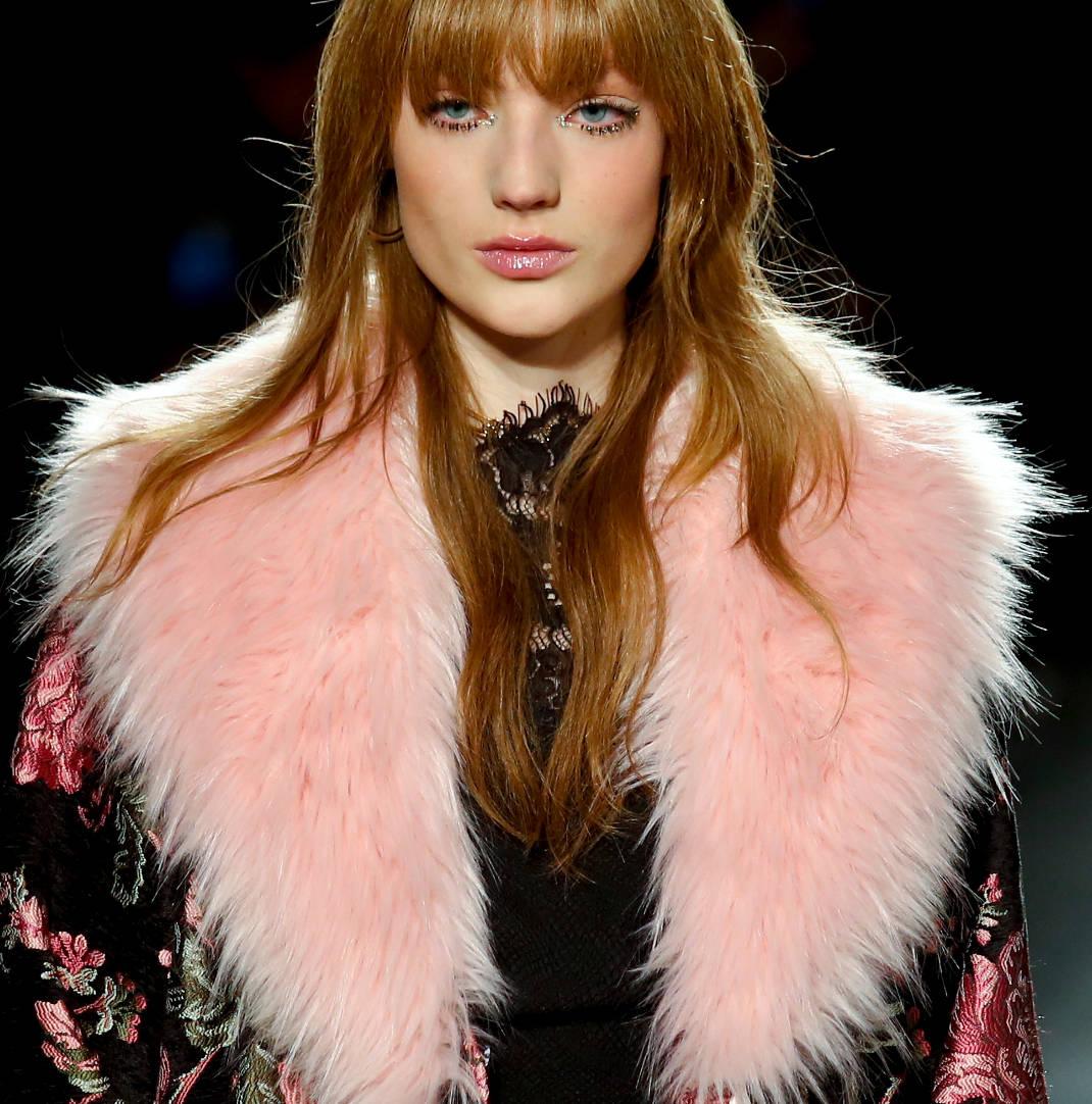 Tadashi Shoji - 9 Φεβρουαρίου: Δημιουργίες που μας ταξίδεψαν σε άλλη εποχή. Σκούρο μπλε, βουργουνδί, γούνα, δαντέλα.