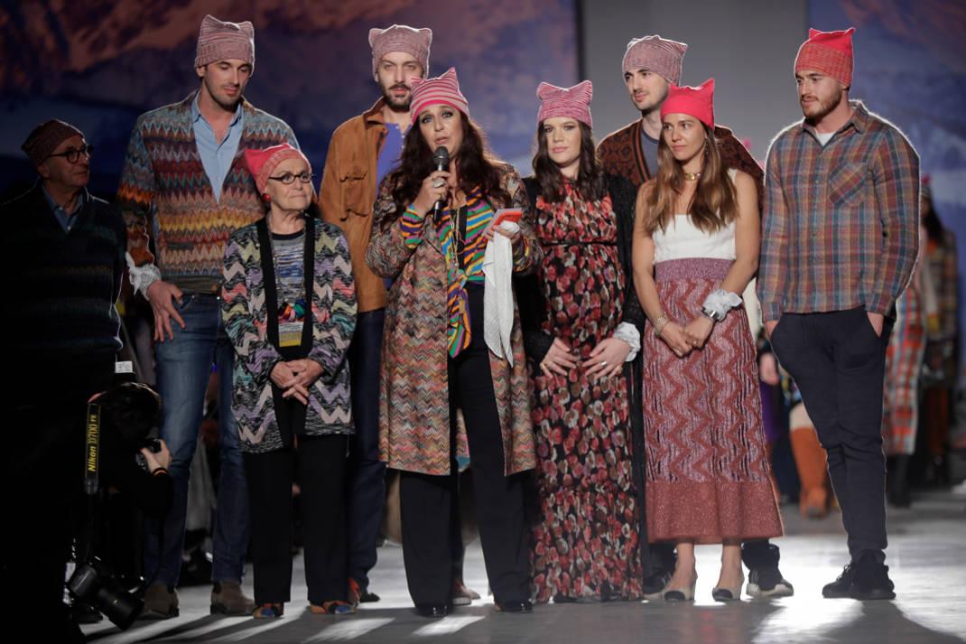 Missoni: Μήνυμα αλληλεγγύης ήθελε να εκφράσει ο οίκος Μissoni στην Εβδομάδα Μόδας του Μιλάνου. Η cozy κολεξιόν του οίκου για το Φθινόπωρο του 2017 είχε πλεκτά και γούνες (κομμάτια των οποίων η άνεση παρέπεμπε στο χούγκα: την δανέζικη αντίληψη για την ευτυχία που πέρασε και στη μόδα και επιτάσσει ρούχα οversized, ζεστά και άνετα. Το knitwear και το κασμίρ, εδώ, αποθεώνεται).