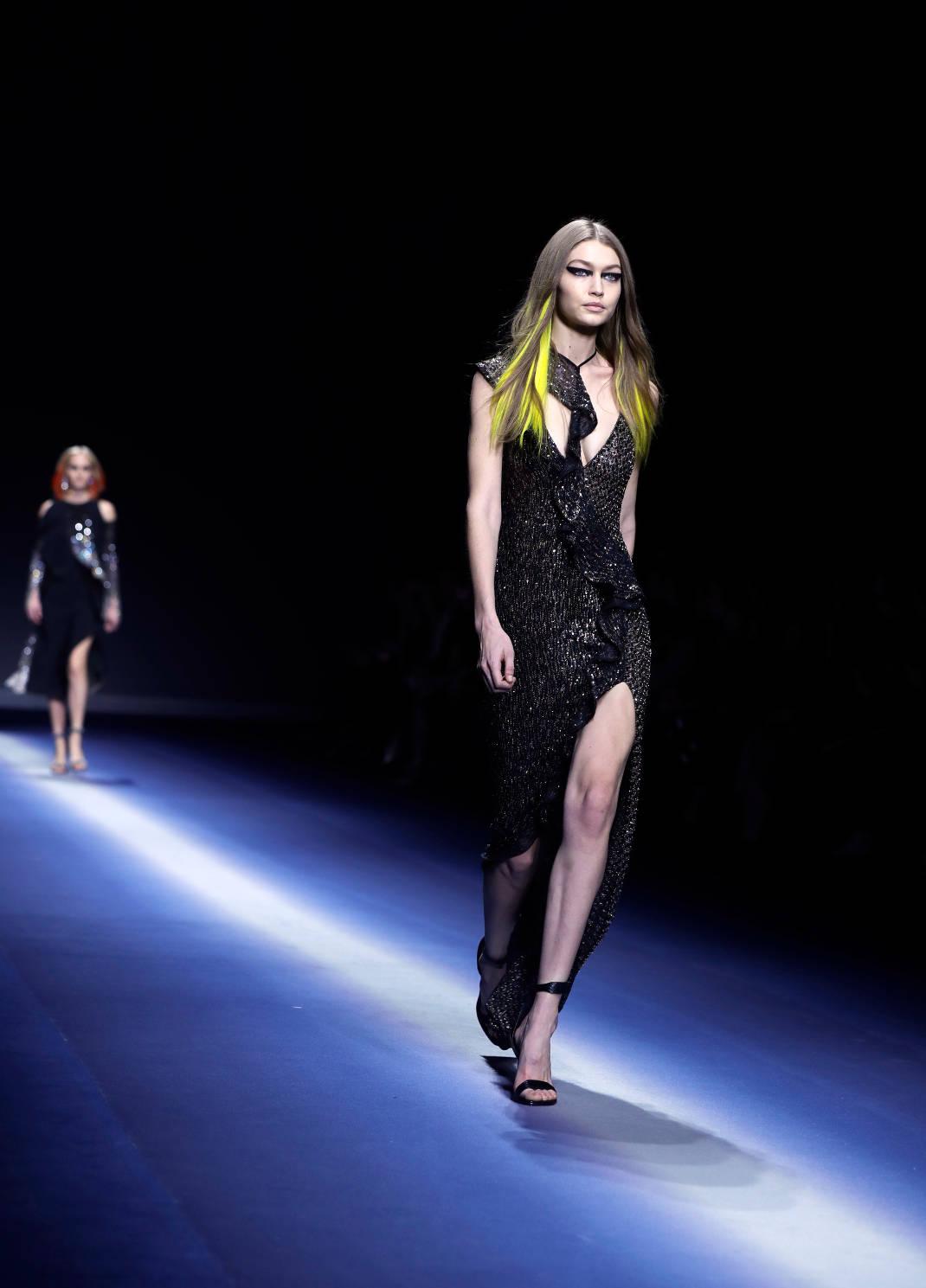 Η Τζίτζι Χαντίντ που συμμετείχε στην επίδειξη ήταν λογικό να κεντρίσει το ενδιαφέρον.