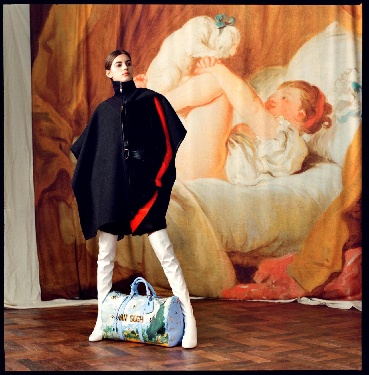 Πρόκειται λοιπόν για μια νέα συλλογή με πνεύμα πρόκλησης: Είναι σακίδια και τσάντες στα οποία φιγουράρουν πέντε πίνακες μεγάλων μετρ της ζωγραφικής: «Η Τζοκόντα» του Λεονάρντο ντα Βίντσι (1503-1506), το Κυνήγι των Λεόντων του Ρούμπενς (1615-1616), «La Gimblette» του Φραγκονάρ, «Χωράφι με Σιτάρι και Κυπαρίσσια» του Βαν Γκονγκ (1889), και «Αρης, Αφροδίτη, Ερωτας» του Τιτσιάνο (περίπου το 1546).