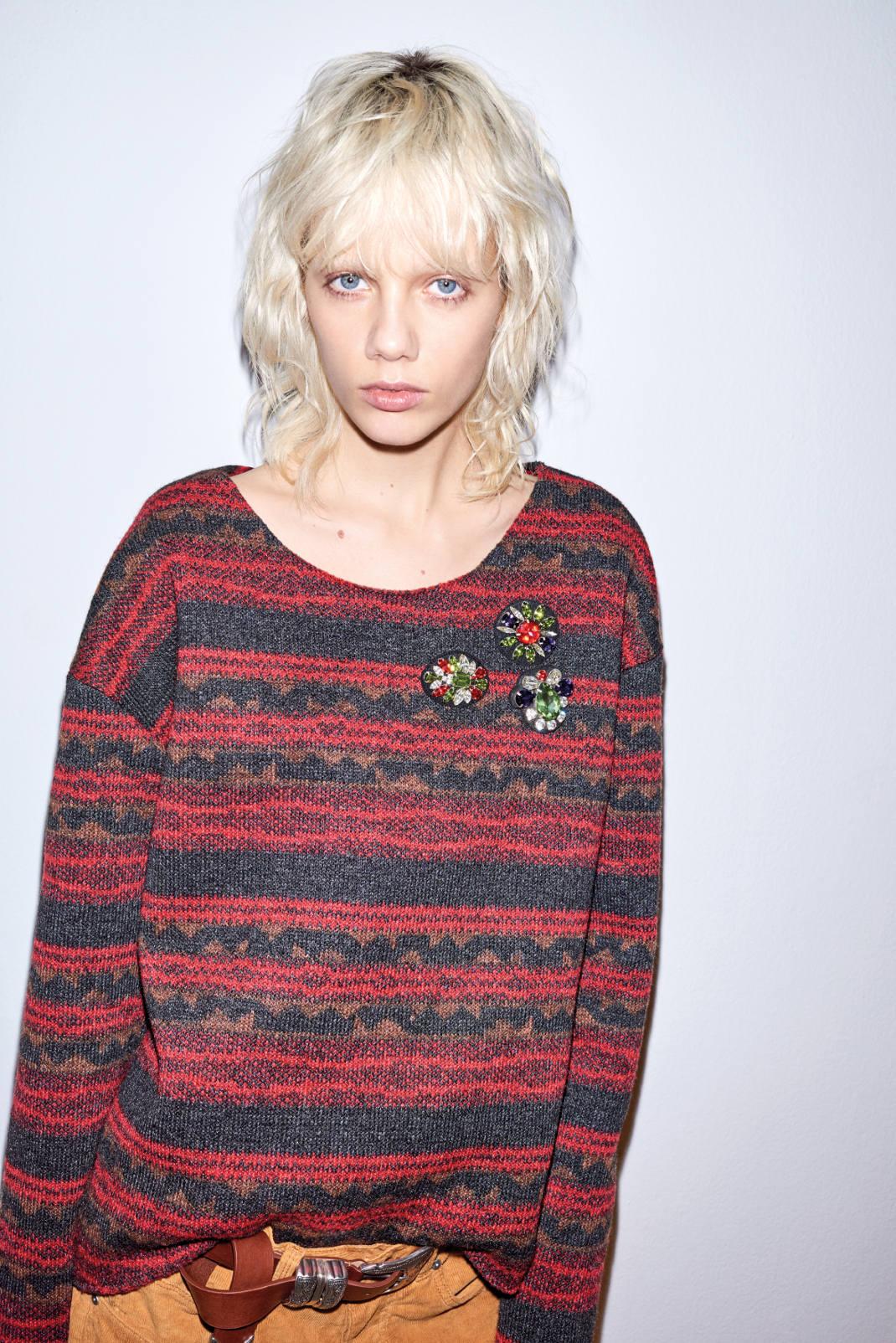 Τα κομμάτια της Simple Black σειράς επικεντρώνεται στο ασημί και το μαύρο και τα γαρνίρει με δυναμικές λεπτομέρειες. Φτερά, κρύσταλλοι και δαντέλα στολίζουν φορέματα, τοπ και παντελόνια, ενώ πιέτες και ντραπαρίσματα χαρίζουν αέρα θηλυκότητας, που ισορροπεί τέλεια μεταξύ μοντέρνου και ρετρό. Οι ρομαντικές προτάσεις των Floreal κομματιών βάζουν το δικό τους ιδιαίτερο touch στην συλλογή με ανθισμένα prints σε διάφανα τοπ και ανάλαφρα φορέματα και το κλασικό bon ton στυλ αποκτά rock and roll διάσταση. Εκείνα που αποτελούν πραγματικό must have είναι τα πλεκτά της Tricot σειράς με μάλλινες midi φούστες και πουλόβερ με μαλακούς ή τονισμένους ώμους να αγκαλιάζουν σφιχτά το σώμα. Εδώ τα υλικά παίζουν το παιχνίδι των αντιθέσεων με το μαλλί να δημιουργεί αισθησιακά κοντράστ σεταρισμένο με technical metallics ή δαντέλα και τούλι.