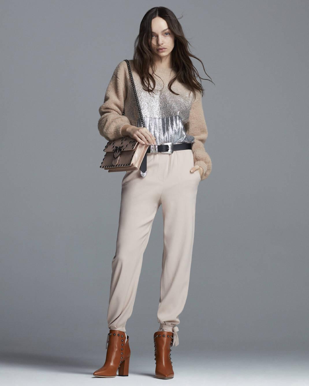 Δυναμικά street στοιχεία και couture αναφορές δημιουργούν ένα νεο-ρομαντικό στιλ συντονισμένο με το rock vibe. H νέα συλλογή είναι αιχμηρή, αυθάδικη και με εκρηκτική προσωπικότητα. Αναμιγνύει το σοφιστικέ, θηλυκό πνεύμα, που χαρακτηρίζει τις συλλογές Pinko με underground techno, pop και couture στοιχεία αλλά και δυνατό rock vibe. Τα πρωινά κομμάτια εστιάζουν στην λεπτομέρεια, και συνδυάζουν το τραχύ αλλά άνετο metropolitan look με την φινέτσα του ανεπιτήδευτου couture. Οι αποδομημένες και oversized φόρμες κυριαρχούν.