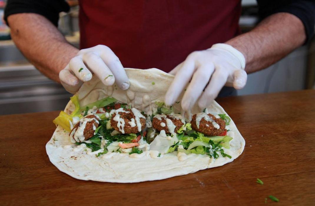 Το φαλάφελ είναι κροκέτες με βάση τα ρεβίθια ή τη φάβα και σύμφωνα μια θεωρία προέρχεται από την Αίγυπτο, όπου καταναλώνονταν από τους κόπτες σε περιόδους νηστείας. Η ιδιαιτερότητά του βρίσκεται στο ότι η γέμιση είναι εξ ολοκλήρου φτιαγμένη από λαχανικά (μαρούλι, ντομάτα, αγγούρι, μελιτζάνα - συνοδεύεται με ρεβιθοκεφτέδες, γιαούρτι και μια καυτερή σάλτσα), αν και συχνά μπορεί να βρείτε και παραλλαγές με κρέας.