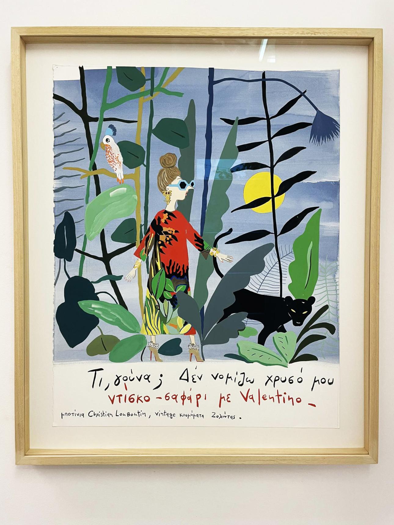 Ο τίτλος της έκθεσης, που ξεκινά με τη λέξη θεϊκή, παραπέμπει στο χαρακτηριστικό επιφώνημα «divine», την αγαπημένη λέξη της εμβληματικής Κυρίας Τεπενδρή, που τόσο έχει συνδεθεί με την ποπ κουλτούρα, κυριεύοντας το καλλιτεχνικό σύμπαν του δημιουργού της. Όμως, αυτή τη φορά την ίδια προσοχή και τον ίδιο χώρο διεκδικούν και άλλες πτυχές από το πολυσχιδές έργο του. Η «διαταραχή προσωπικότητας» μετεωρίζεται ανάμεσα στην ιλουστρασιόν πλευρά της trademark περσόνας της Κυρίας Τεπενδρή και στην ώριμη, εσωτερική φωνή του καλλιτέχνη. Πειστήριο ότι το υπόβαθρο και οι αναζητήσεις του έχουν τη δική τους αξία, πέρα από τη larger than life καρικατούρα, που εντέλει δεν τον επισκιάζει.