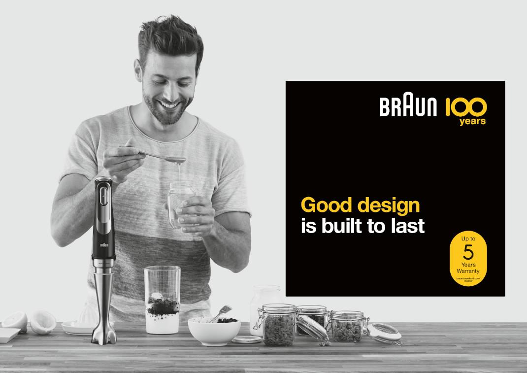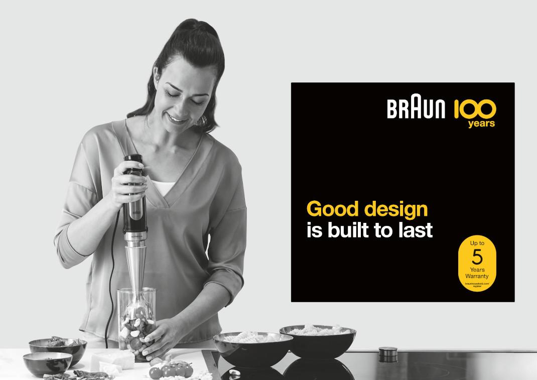 Ο καθηγητής Oliver Grabes, Head of Global Braun Design/ P&G, στέλνει το παρακάτω μήνυμα: H επέτειος αυτή είναι η ευκαιρία να ανοίξουμε το διάλογο γύρω από τις θεμελιώδεις αρχές μας για το ‘good design’ – χρήσιμο, απλό και ανθεκτικό στο χρόνο – αλλά και ποια μπορεί να είναι η επίδρασή του για τα επόμενα 100 χρόνια. Έχουμε οργανώσει ένα συναρπαστικό πρόγραμμα σε συνεργασία με ηγετικές φιγούρες στο χώρο του design ενώ έχουμε σχεδιάσει και μοναδικές limited edition συσκευές με διευρυμένη εγγύηση που την ονομάζουμε 100th Anniversary Collection.