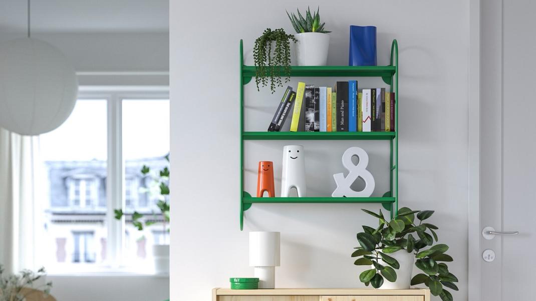 Για να αναδείξετε το ράφι από τα ΙΚΕΑ, μπορείτε να το διακοσμήσετε με δύο διαφορετικούς τρόπους, πάντα με στόχο να αναδείξετε το πράσινο χρώμα του.