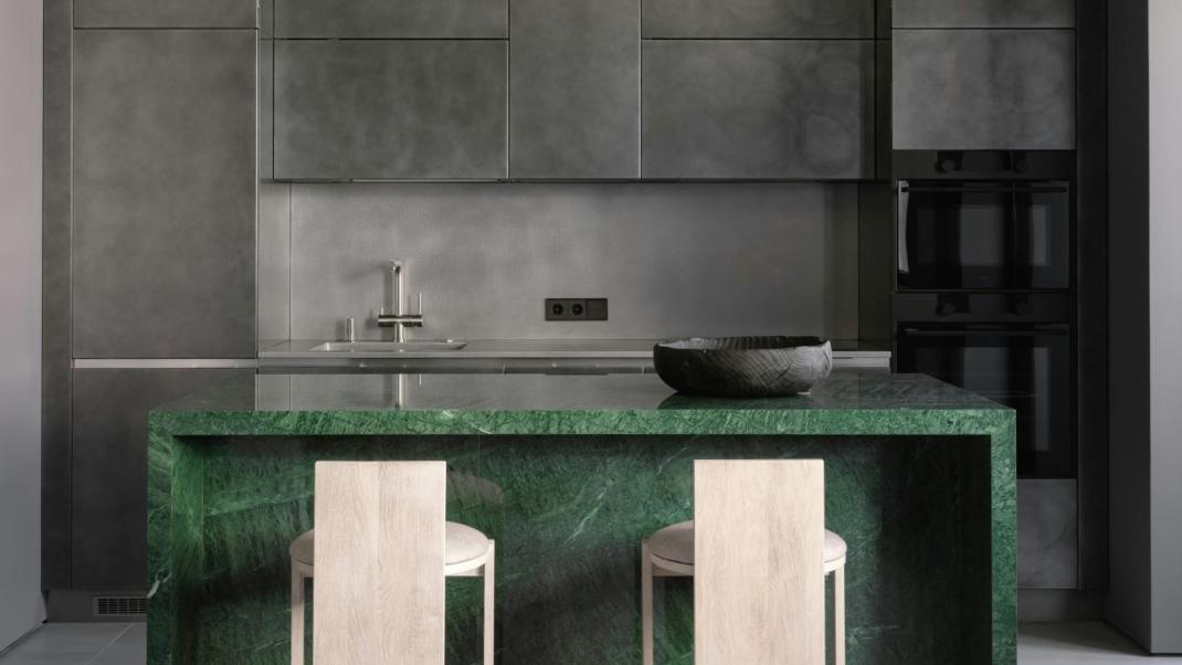 Οι αποχρώσεις πράσινου του νεφρίτη φέρνουν παιχνιδιάρικη διάθεση στον χώρο. Ακόμη και το απαλό πράσινο, όπως η φιστικί απόχρωση, μπορεί να δώσει χρώμα χωρίς να βαραίνει τον χώρο, κρατώντας την κουζίνα μίνιμαλ και καθαρή.