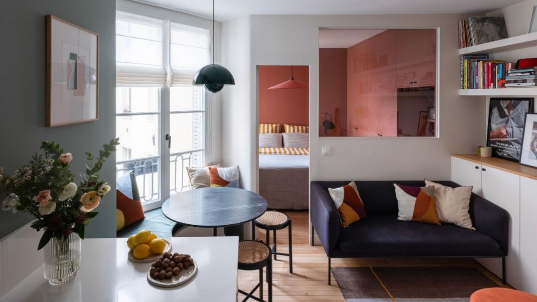 Στην καρδιά του Παρισιού, ένα μικρό διαμέρισμα μόλις 34 τετραγωνικών μέτρων έχει μεταμορφωθεί σε ένα φωτεινό και ζεστό σπίτι για ένα νεαρό ζευγάρι.