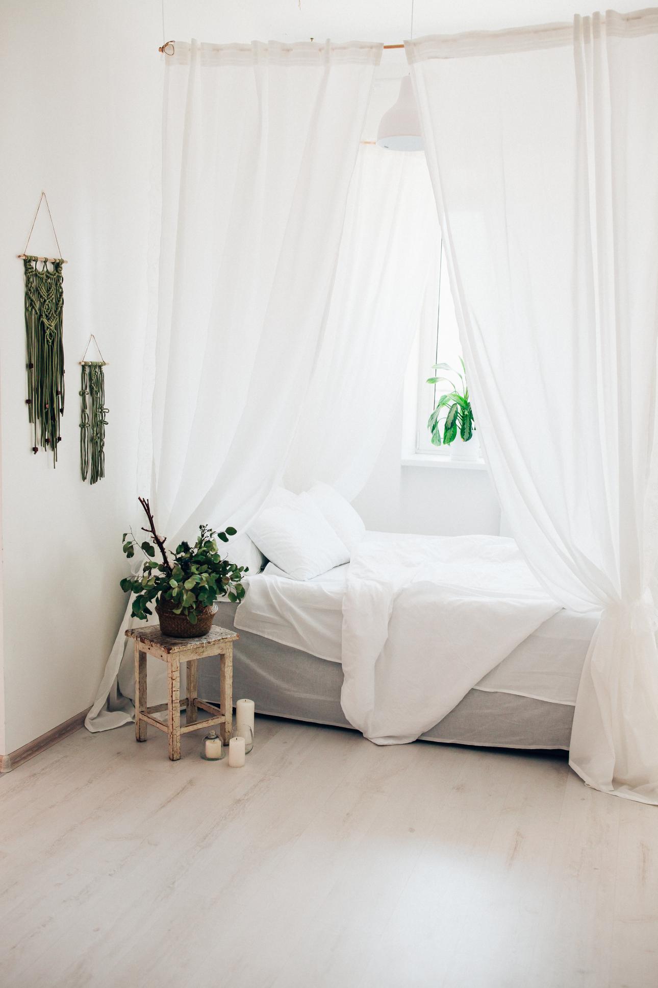 Ένας έξυπνος τρόπος για να περισσέψει χώρος σε ένα μικρό υπνοδωμάτιο είναι να τοποθετήσετε το κρεβάτι δίπλα στον τοίχο και όχι στη μέση του δωματίου. Επίσης μπορείτε να το «κρύψετε» τοποθετώντας μια κουρτίνα γύρω του έτσι ώστε να δημιουργήσετε την ψευδαίσθηση του μεγαλύτερου χώρου.