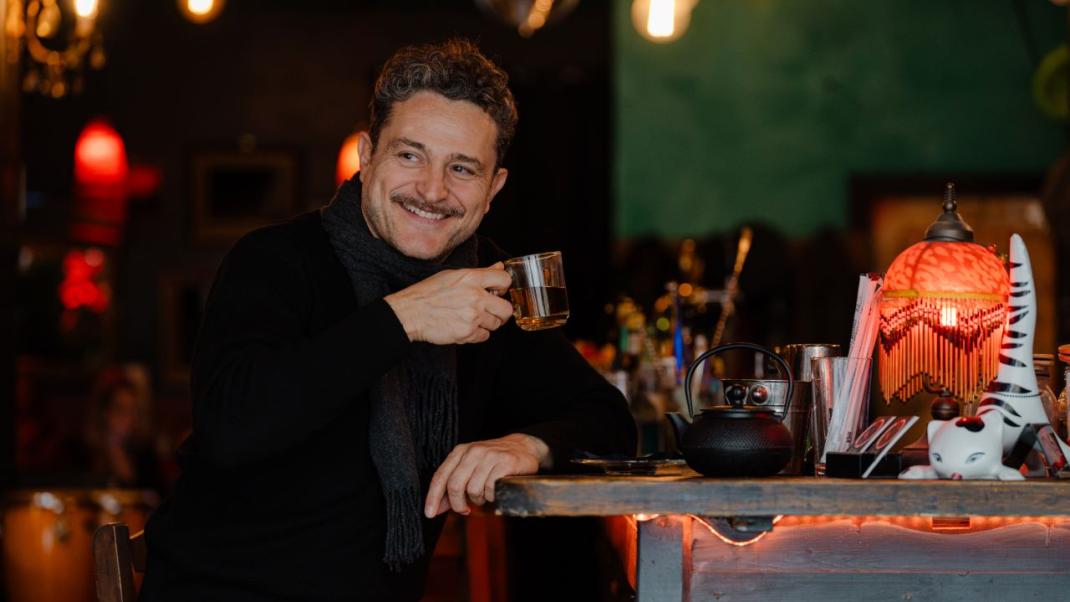 Συναντιόμαστε στην «Ψιψίνα» στο Ψυρρή και, πίνοντας ένα ζεστό τσάι με βότανα, αποκαλύπτει πιο άγνωστες πτυχές του εαυτού του: τις ταμπέλες που πέταξε από πάνω του, τα στερεότυπα, με τα οποία μεγάλωσε και θέλησε να αποτινάξει, την κοσμοθεωρία του μετά τα 50, τη σχέση του με τα παιδιά του, το σοβαρό ζήτημα υγείας που αντιμετώπισε, αλλά και τις προτεραιότητες που θέτει πλέον, ώστε να ζει πιο δημιουργικά και ισορροπημένα.