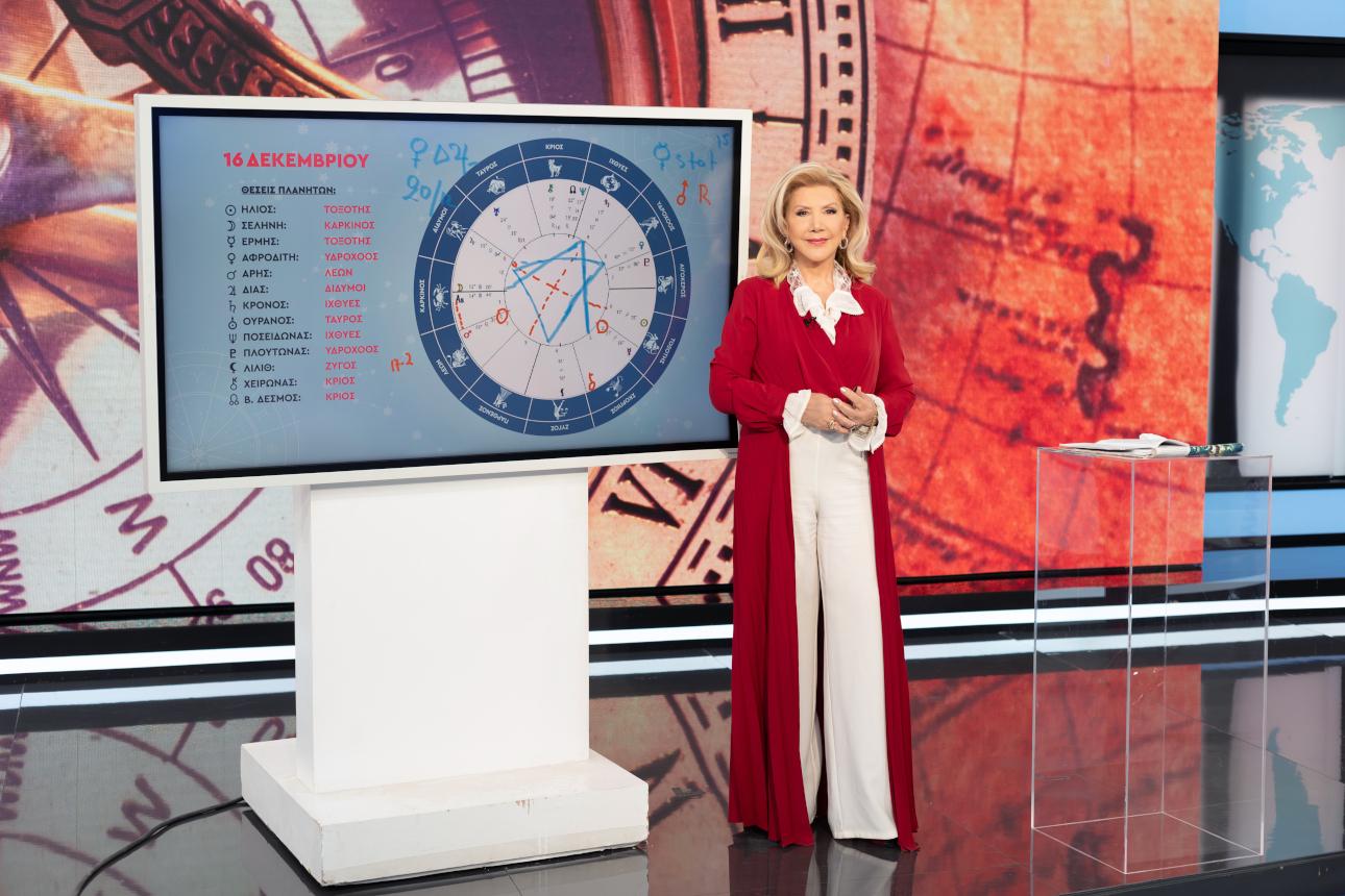 »Αν μου λείπει η τηλεόραση; Είμαι πολύ ευχαριστημένη τώρα γιατί έχω χρόνο και μπορώ να δώσω στον κόσμο να καταλάβει τι είναι η αστρολογία. Αυτός ήταν από την αρχή ο στόχος της ζωής μου. Δεν ήταν να βιοποριστώ από αυτό. Ηθελα να δώσω στον κόσμο να καταλάβει τι είναι αυτό που κατάλαβα εγώ. Τώρα λοιπόν που έχω περισσότερη ώρα είμαι πάρα πολύ ευχαριστημένη. Αλλά ότι μου λείπει η τηλεόραση, μου λείπει. Ηταν μια καθημερινότητα, οι φίλοι, ο καφές μας, ναι, ήταν ωραία. Αλλά ότι τώρα ο τρόπος μου είναι πιο σωστός, είναι. Γιατί δίνω στον κόσμο να καταλάβει. Όχι δεν αισθάνομαι ευθύνη για αυτά που λέω, ίσα-ίσα που νοιώθω ότι σε προφυλάσσω. Μακάρι να μπορούσα να το δώσω και να το πίστευαν όλοι. Είναι σαν προστασία -χωρίς να πανικοβάλεις τον άλλον.