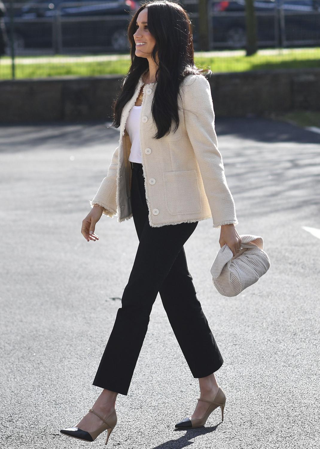 Όπως βλέπουμε στο site του brand, το σακάκι έχει δική του ζώνη (την οποία η Μέγκαν δε φόρεσε) και κοστίζει 295 λίρες. Μάλιστα, το συγκεκριμένο κλασικό στιλ α λα Chanel έχει επιστρέψει φέτος στη μόδα, με τις πιο ενημερωμένες να εντάσσουν μεσάτα τουίντ και μπουκλέ σακάκια στα looks τους.