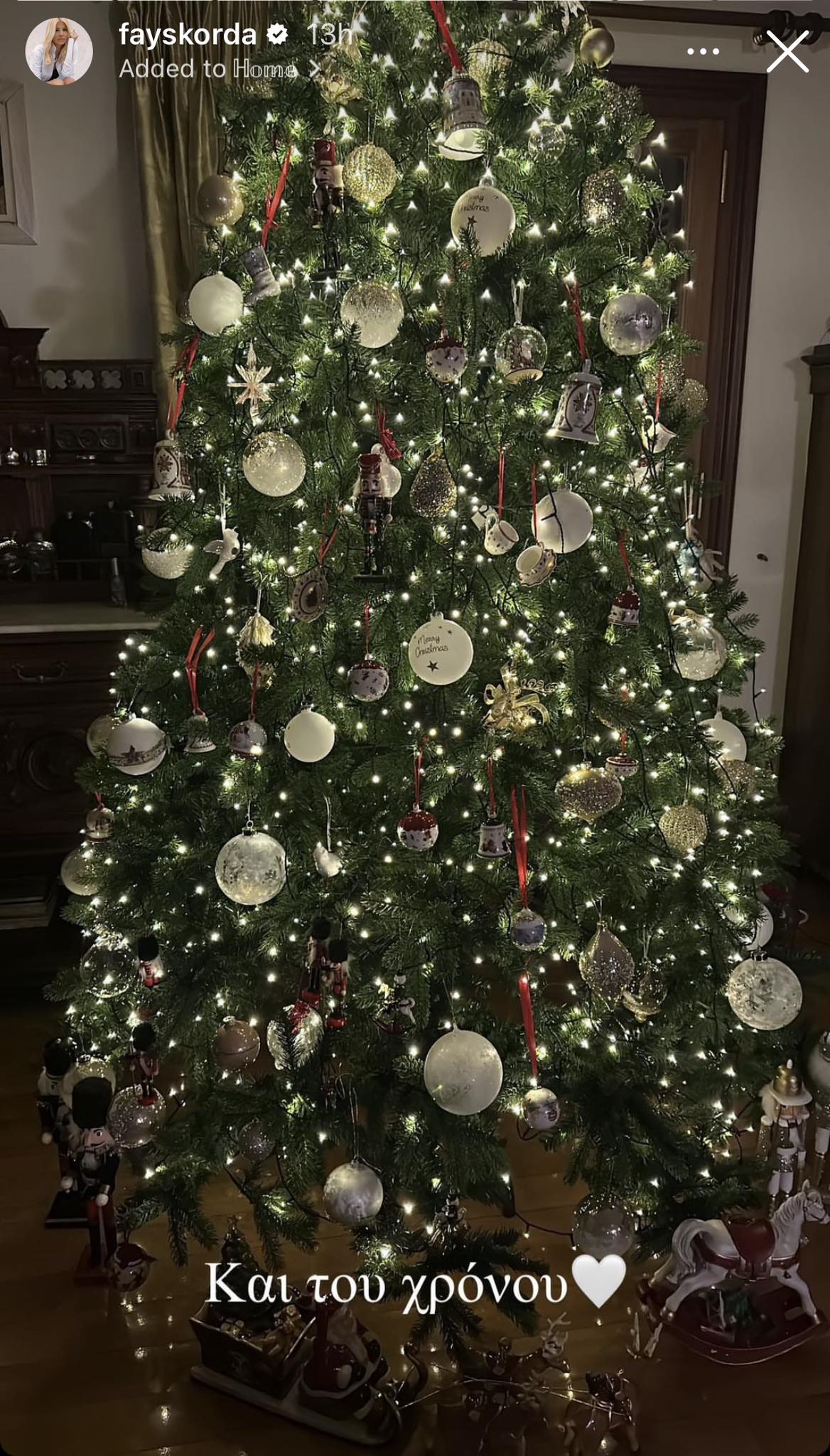 Στη συνέχεια η Φαίη Σκορδά κοινοποίησε το τελικό αποτέλεσμα του χριστουγεννιάτικου δέντρου της, το οποίο είναι διακοσμημένο με λευκές μπάλες και εντυπωσιακά στολίδια.