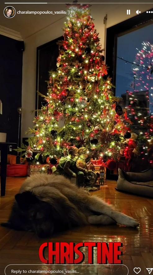 Ο Βασίλης Χαραλαμπόπουλος φωτογράφησε το εντυπωσιακό δέντρο του σπιτιού τους και με μια ανάρτηση σε Instagram story έκανε γνωστό στους θαυμαστές του πως στόλισε με τη Λίνα Πρίντζου.