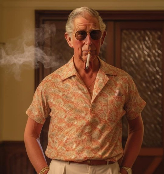 Σε αυτές βλέπουμε τον βασιλιά Κάρολο με ένα τσιγάρο στο στόμα και με χαβανέζικο πουκάμισο, τον πρίγκιπα της Ουαλίας με ένα φωτεινό πορτοκαλί κοστούμι και τη Κέιτ πίσω από τα decks σε ρόλο dj. Ολα αυτά, βέβαια, μοιάζουν να είναι βγαλμένα από...άλλο σύμπαν.