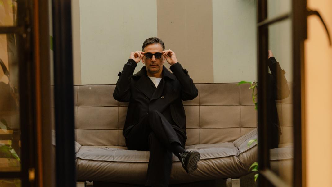 Τον συναντήσαμε ένα μεσημέρι στο ατμοσφαιρικό ατελιέ του στο Κολωνάκι. Ο τοίχος με τη βιομηχανική υφή δίνει αμέσως τον τόνο, ενώ στο εσωτερικό το ξύλο και οι καθαρές γραμμές δημιουργούν μια αίσθηση ήρεμου μοντερνισμού. Το αίθριο, φωτεινό και ανοιχτό, λειτουργεί σαν παύση μέσα στον ρυθμό της δουλειάς, ανάμεσα σε σχέδια, πατρόν, δοκιμές και τη συγκέντρωση που απαιτεί η περίοδος μιας συλλογής.