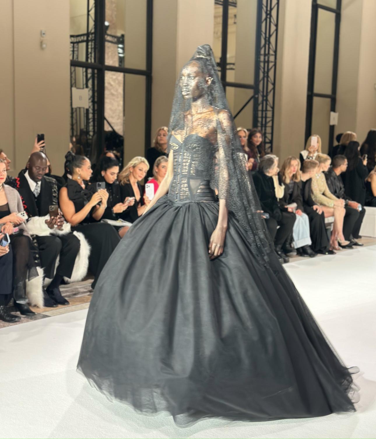 Μια ιδιαίτερη στιγμή της επίδειξης ήταν όταν η Σίλια Κριθαριώτη παρουσίασε το μαύρο νυφικό που είχε σχεδιάσει για τον Αντώνη Λυμπέρη, ο οποίος έφυγε από τη ζωή τον περασμένο Νοέμβριο. Το νυφικό, με το μαύρο πέπλο από δαντέλα, είχε έντονο συμβολικό χαρακτήρα και αποπνέει μια αίσθηση δραματικής κομψότητας.
