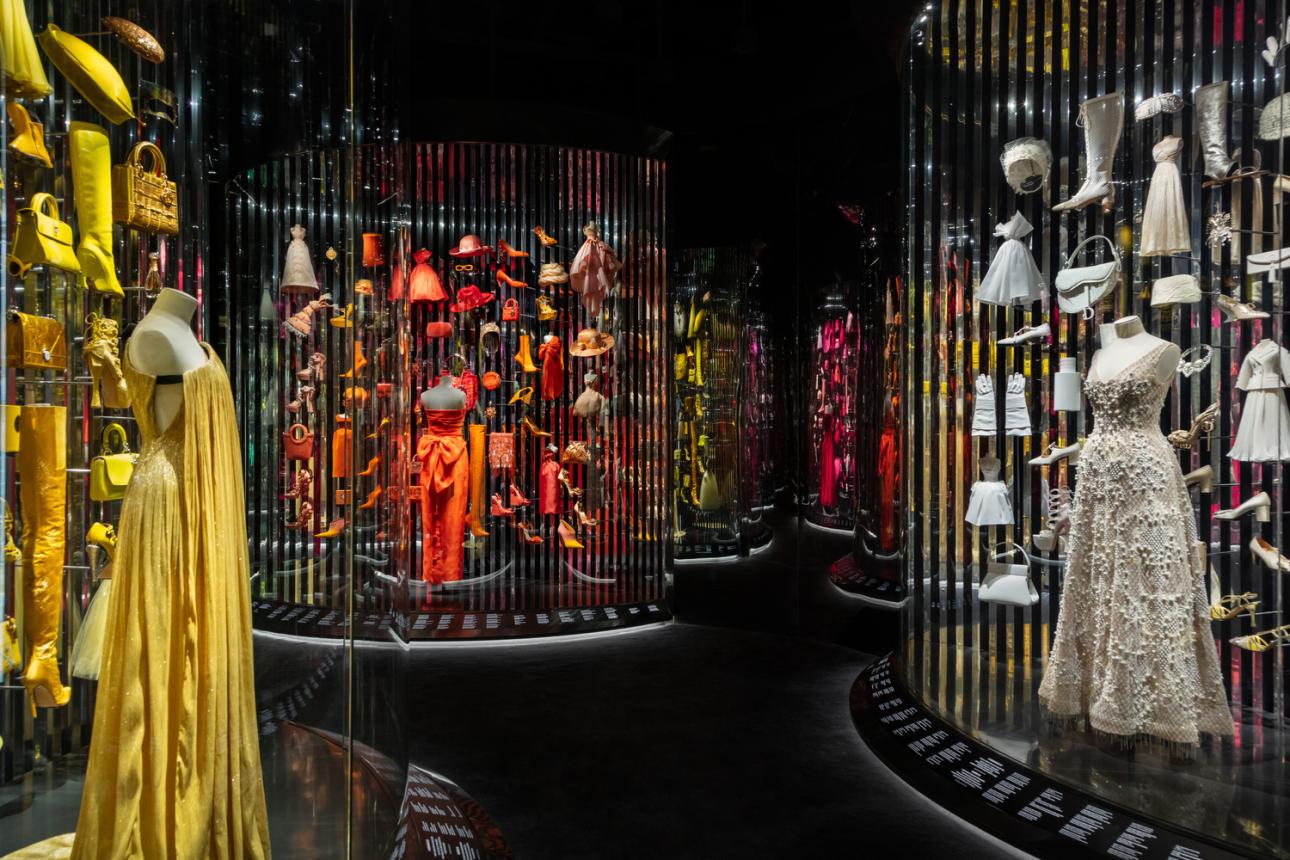 Οι θεματικές ενότητες ξεδιπλώνονται με ρυθμό και κομψότητα, ενώ το design των χώρων παραπέμπει σε τεχνικές ραπτικής –όπως τα χωρίσματα που θυμίζουν βολάν και οι γεωμετρίες που εμπνέονται από τις σιλουέτες των φορεμάτων. Στην αίθουσα «Dior Garden», οι δημιουργίες μοιάζουν να αιωρούνται, ενώ το ταβάνι θυμίζει ουρανό ο φωτισμός του οποίου αλλάζει ανάλογα με την ώρα και την εποχή, ανακαλώντας τον αισθησιασμό της κορεατικής παράδοσης και τη μινιμαλιστική ομορφιά των moon jars.