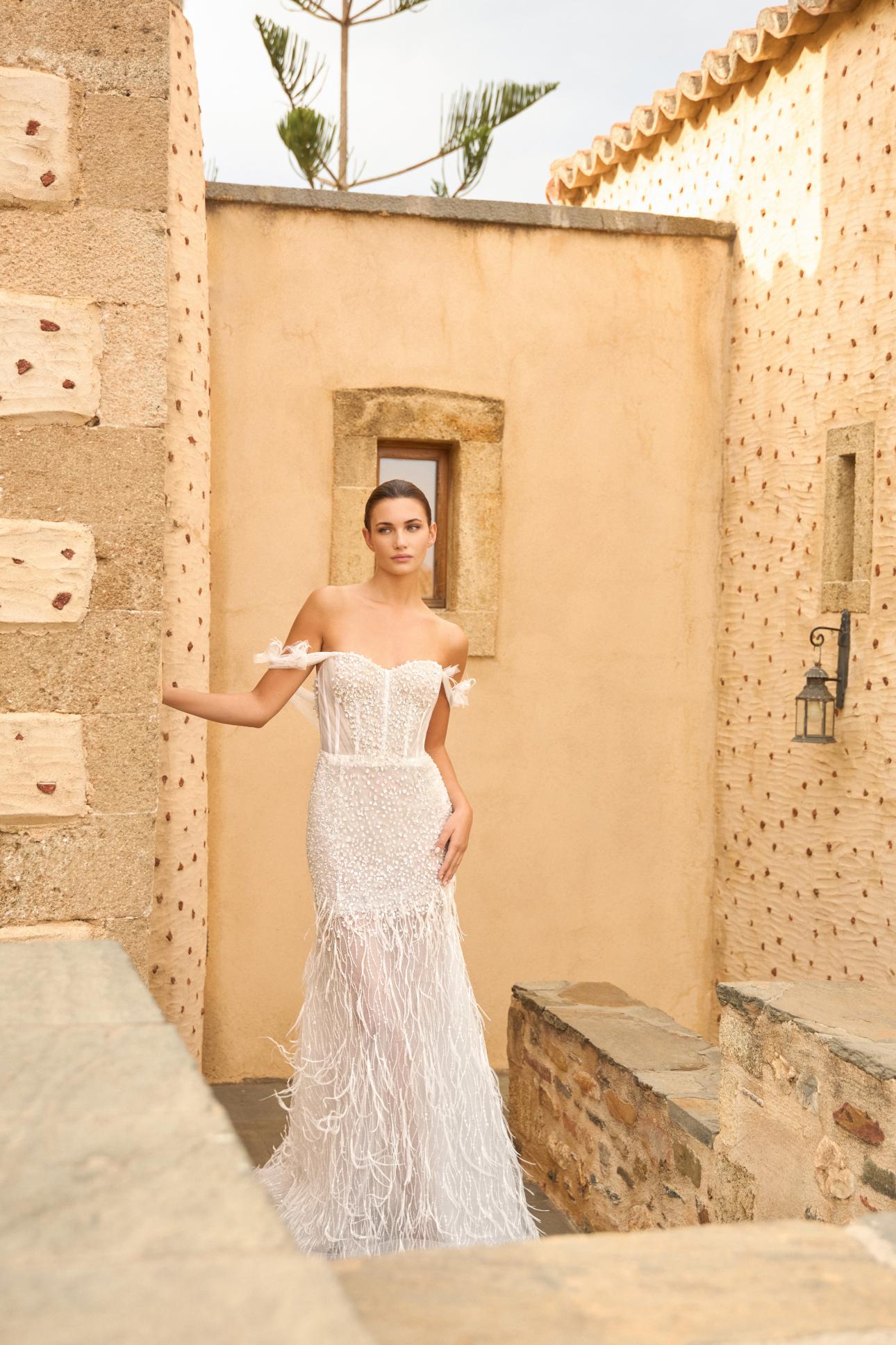 Στη λαμπερή συλλογή Fairy Tale, η νύφη μετατρέπεται σε μια σύγχρονη νεράιδα που εκπέμπει θηλυκότητα και ρομαντισμό. Χυτές σιλουέτες, αιθέρια υφάσματα και υλικά όπως δαντέλες, κρύσταλλα Swarovski, κεντήματα από φτερά Plume d’Ostrich και μοτίφ γαλλικής δαντέλας συνθέτουν ένα σκηνικό εμπνευσμένο από τη μαγεία του μεσοπολέμου και την αίγλη του Old Hollywood.