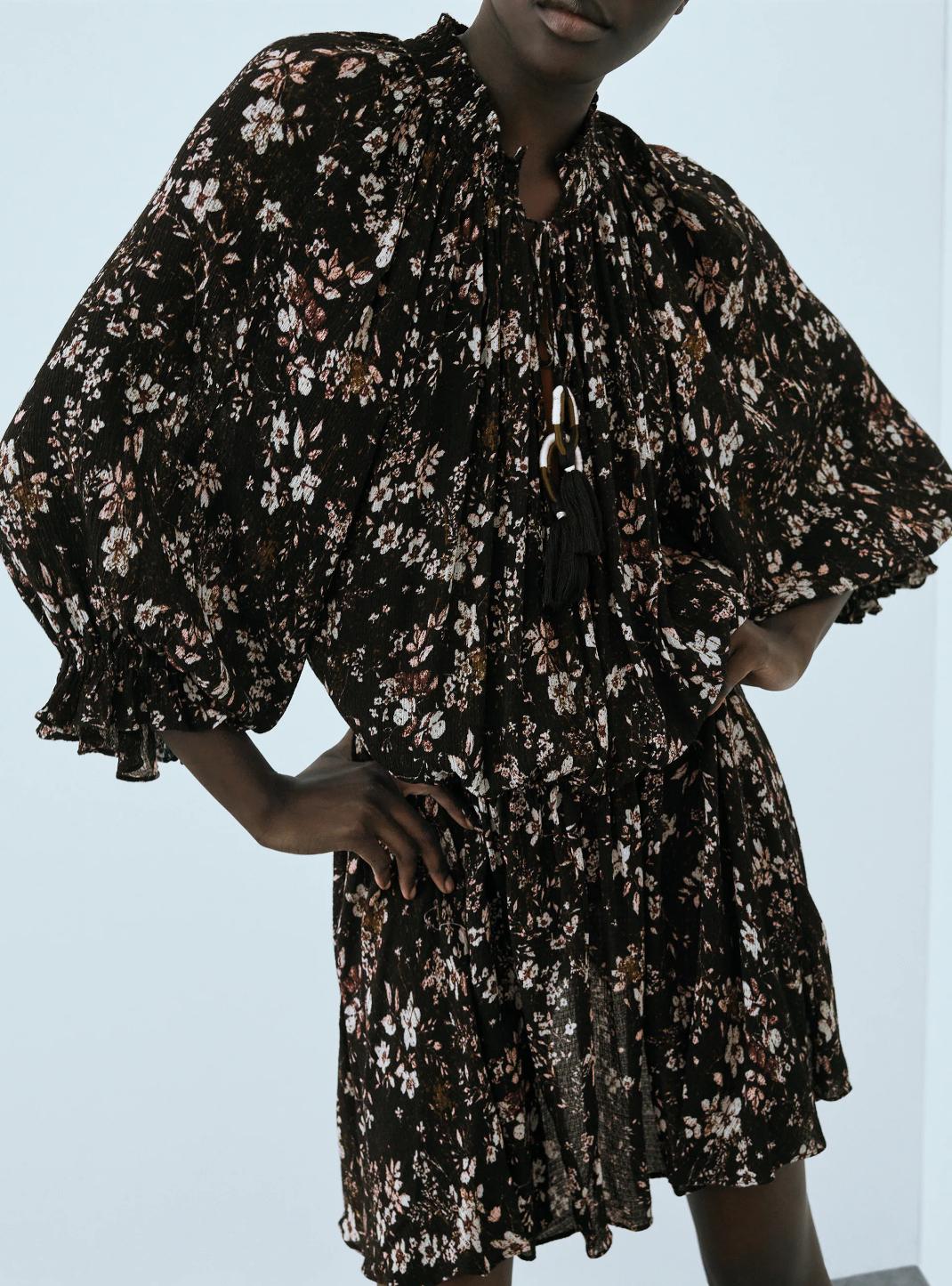 Στη φθινοπωρινή συλλογή των Zara ανακαλύψαμε ένα σούπερ στιλάτο μίνι φλοράλ φόρεμα.