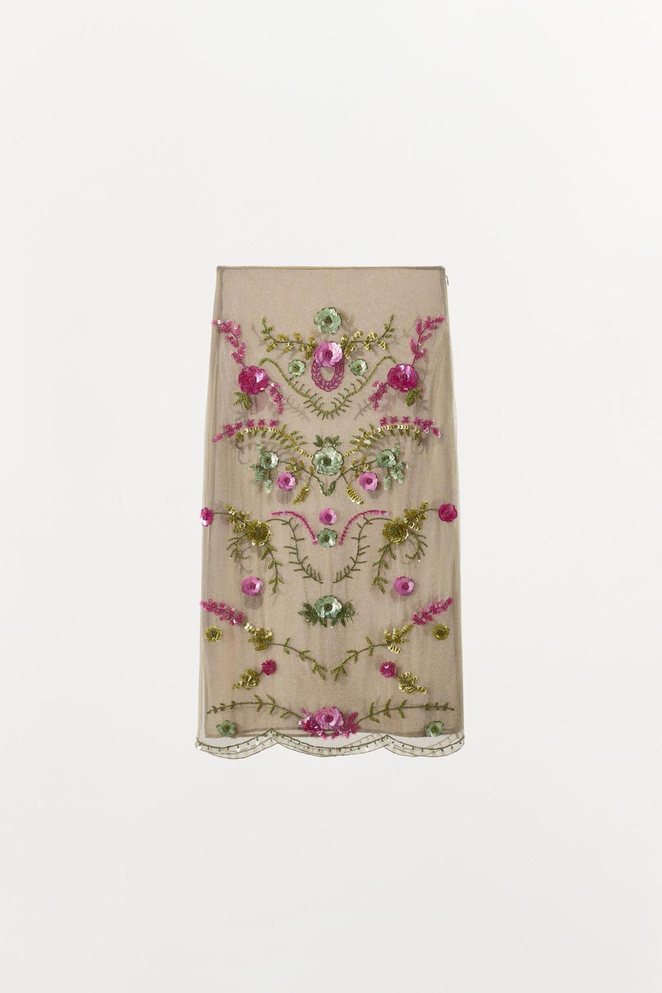 Είναι πολλά τα στοιχεία που κάνουν αυτή τη φούστα της Zara να ξεχωρίζει ως η πιο όμορφη. Η midi γραμμή της προσδίδει κομψότητα, το ύφασμα λεπτότητα και τα κεντήματα μια vintage αισθητική. Μας ενθουσιάζει επίσης ο χρωματικός συνδυασμός ανάμεσα στο ροζ και το τιρκουάζ. Αναμφίβολα, πρόκειται για μια φούστα με την οποία δεν θα περάσεις απαρατήρητη. Το θετικό είναι ότι θυμίζει κομμάτι πασαρέλας και όχι μαζικής παραγωγής από τη Zara.