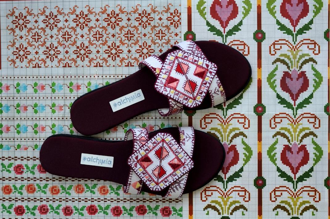 Άλλωστε η νέα συλλογή των Alchimia Vegan Shoes, είναι πιο ώριμη από ποτέ. Τα παλιά κεντήματα (σταυροβελονιά) δουλεύτηκαν με γνώμονα την συνειδητή προσπάθεια να συνδεθούν δύο χρονικά απομακρυσμένες περίοδοι, η σύγχρονη εποχής της μηχανής και της αυτοματοποίησης με την παλιά χειροποίητη παραγωγή.
