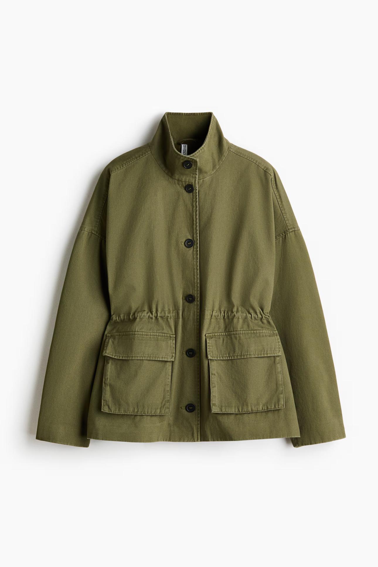 Ένα χαρακτηριστικό παράδειγμα αποτελεί η πρόταση της H&M, η οποία συνδυάζει προσιτή τιμή με σύγχρονο design. Με μεγάλες πρακτικές τσέπες και γραμμή που τονίζει τη μέση, το jacket αυτό ισορροπεί ανάμεσα στην άνεση και την κομψότητα. Παράλληλα, ο ψηλός γιακάς (funnel neck) προσθέτει έναν μοντέρνο τόνο, ακολουθώντας τις τάσεις που προτιμούν προσωπικότητες όπως η Victoria Beckham και η Kendall Jenner.