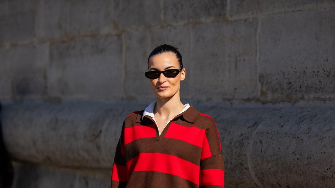 Το κομμάτι που τράβηξε περισσότερο την προσοχή ήταν το ριγέ πόλο από τα Zara, ένα item που έχει ήδη γίνει viral αυτή τη σεζόν. Με κόκκινες και καφέ ρίγες και μακρύ μανίκι, ξεχωρίζει για τον effortless χαρακτήρα του και την ευκολία με την οποία μπορεί να συνδυαστεί.