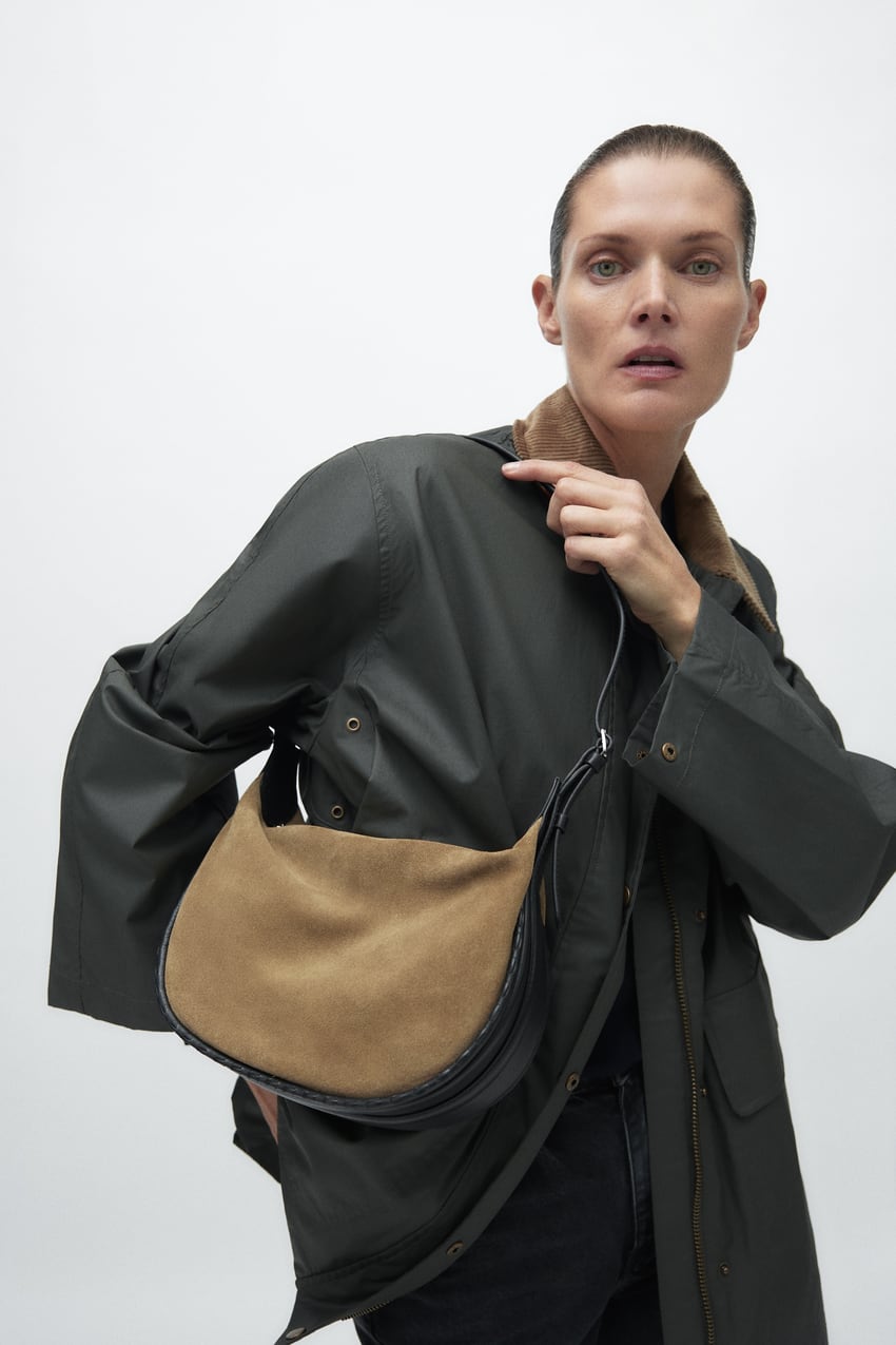 Στη συλλογή των Zara ανακαλύψαμε μια υπέροχη τσάντα μεσαίου μεγέθους που μοιάζει να βγήκε από το ατελιέ ενός σύγχρονου designer. Η στιλάτη τσάντα με την απαλή suede υφή και τις ντελικάτες δερμάτινες λεπτομέρειες μοιάζει σαν ένα μικρό γλυπτό, που όμως χωρά όλα τα απαραίτητα.