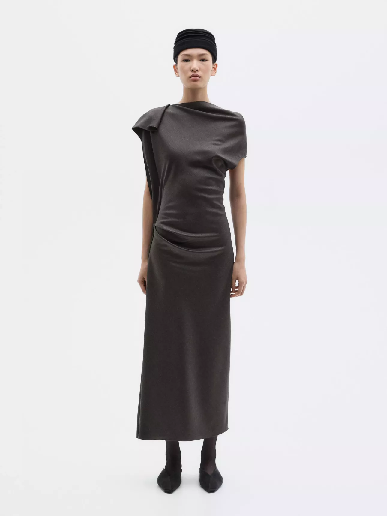 Σοκολατί φόρεμα με ιδιαίτερη λαιμόκοψη/ Δείτε εδώ