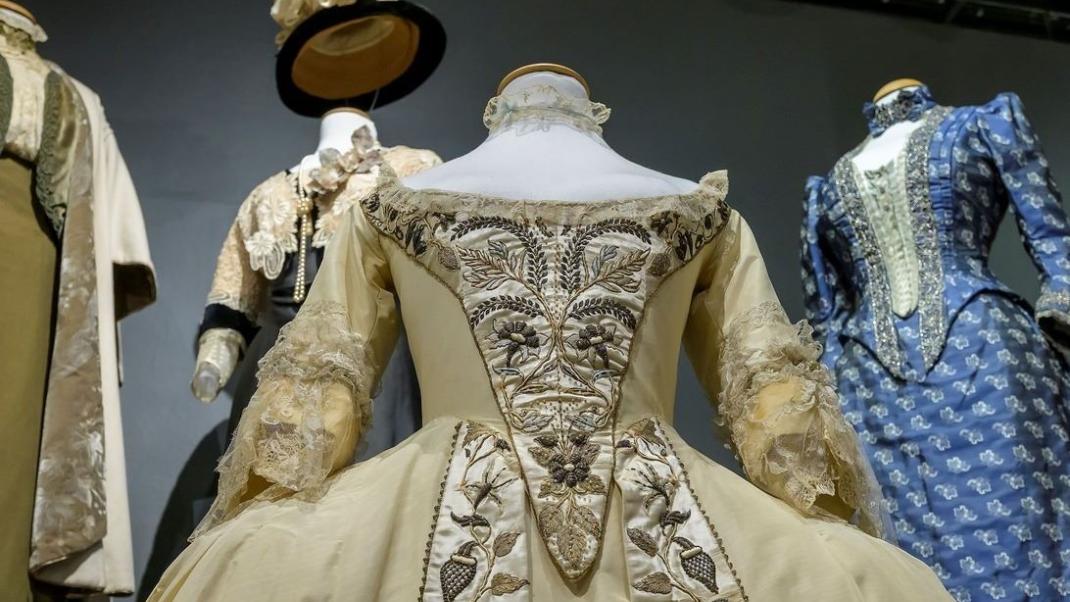 Στην έκθεση ξεχωρίζουν και κομμάτια που προορίζονταν για κομπάρσους -ρούχα που εμφανίζονταν ελάχιστα στην οθόνη -όπως μια πολυεπίπεδη φόρμα της δεκαετίας του 1860 από τη σειρά The Leopard του Netflix.