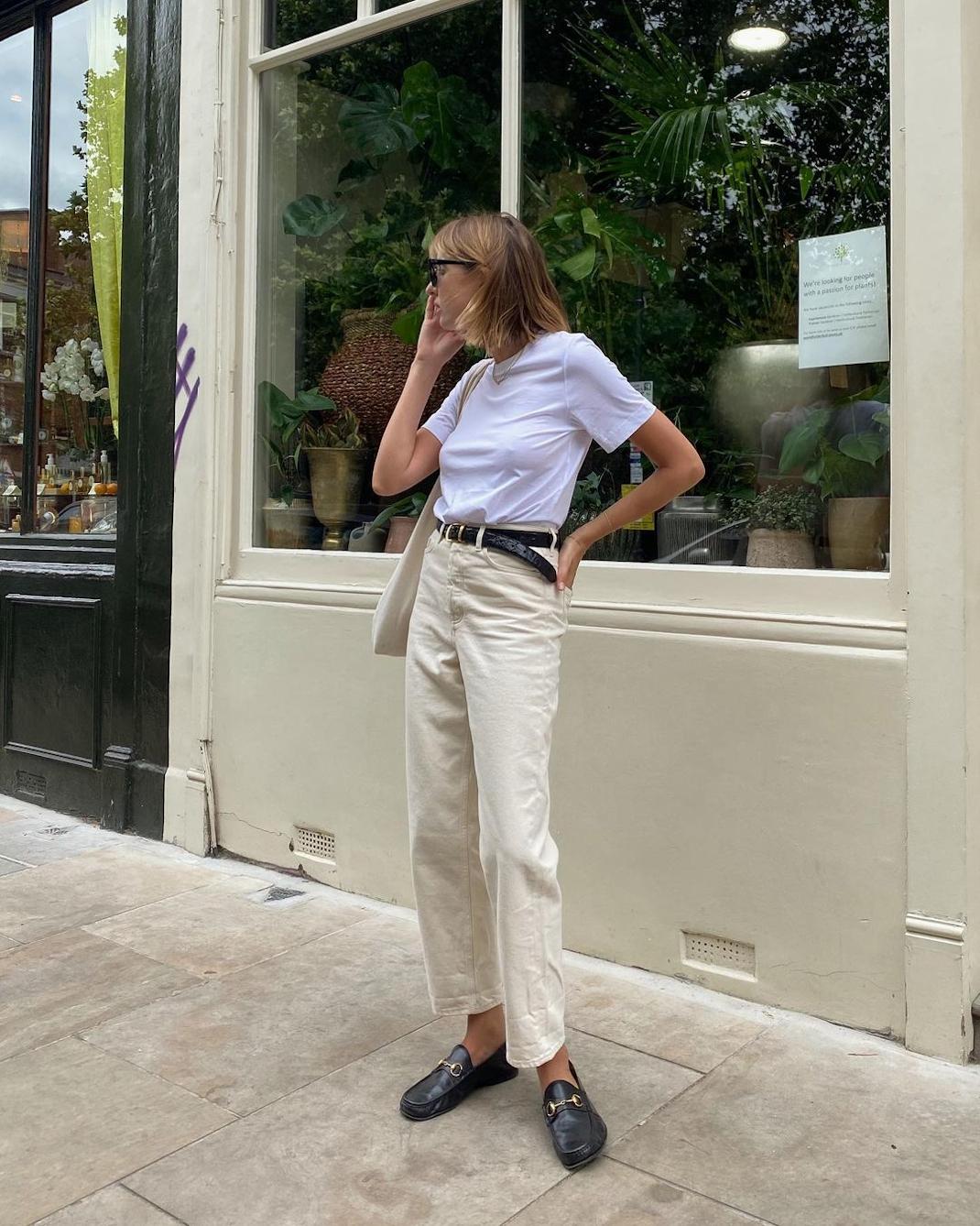 Ένα ζευγάρι κομψά loafers ενισχύει τον classy χαρακτήρα του λευκού τζιν και σε συνδυασμό με μία ζώνη κάνει ακόμη και το πιο casual look να δείχνει πιο formal.