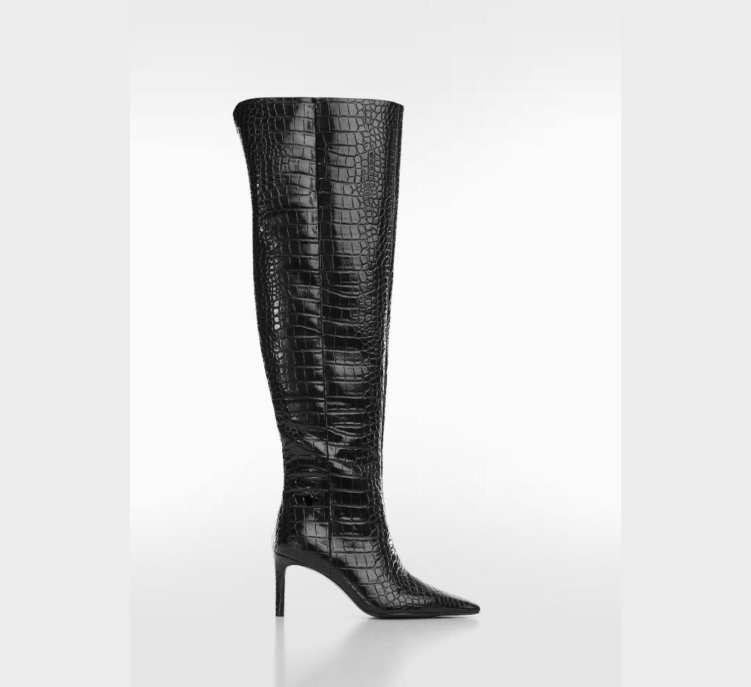 Στα Mango ανακαλύψαμε ένα ζευγάρι μαύρες over the knee μπότες με κροκό υφή, που σίγουρα θα ερωτευτείτε με την πρώτη ματιά.