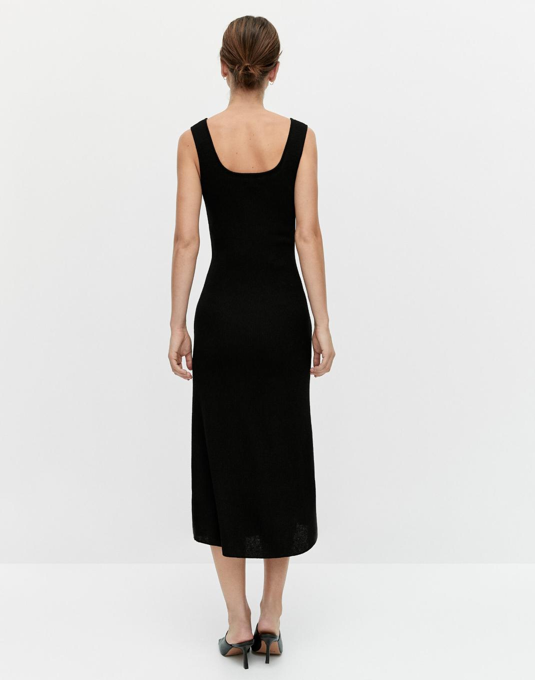 Με ribbed υφή ώστε να αγκαλιάζει μαλακά το σώμα και τετράγωνο ντεκολτέ με φαρδιές τιράντες, παραπέμπει στα 60s φορέματα της Όντρεϊ Χέμπορν και της Μπριζίτ Μπαρντό και αποπνέει κλασική γοητεία.