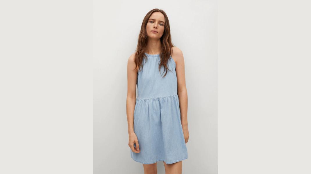 Βαμβακερό φόρεμα με βολάν Mango, shop.mango.com/gr