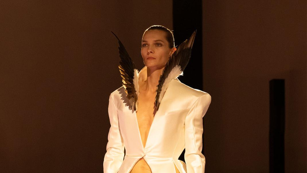 Από τα πρώτα μοντέλα, το κοινό μαγεύτηκε από τη θεατρικότητα και τη δύναμη της επίδειξης. Τα ρούχα δεν ακολουθούσαν τις παραδοσιακές γραμμές ή τις κλασικές σιλουέτες. Αντίθετα, κάθε φόρεμα και κάθε λεπτομέρεια ήταν σχεδιασμένα σαν μικρά γλυπτά, με στοιχεία που θύμιζαν μυθολογικά πλάσματα, φτερά που αιωρούνταν και κορσέδες με ουρές σκορπιού. Η αίσθηση ήταν ότι βλέπεις περισσότερο μια performance τέχνης παρά μια απλή επίδειξη μόδας.