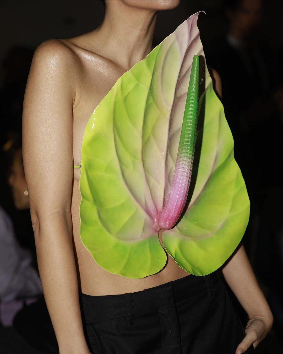 Από τη Spring/Summer 2023 συλλογή σίγουρα το showstopper κομμάτι ήταν το top ανθούριος -ένα αληθινό έργο τέχνης, τόσο ντελικάτο που αποπνέει την ευθραυστότητα και φινέτσα των λουλουδιών και συνάμα την πολυτέλεια που χαρακτηρίζει το brand.