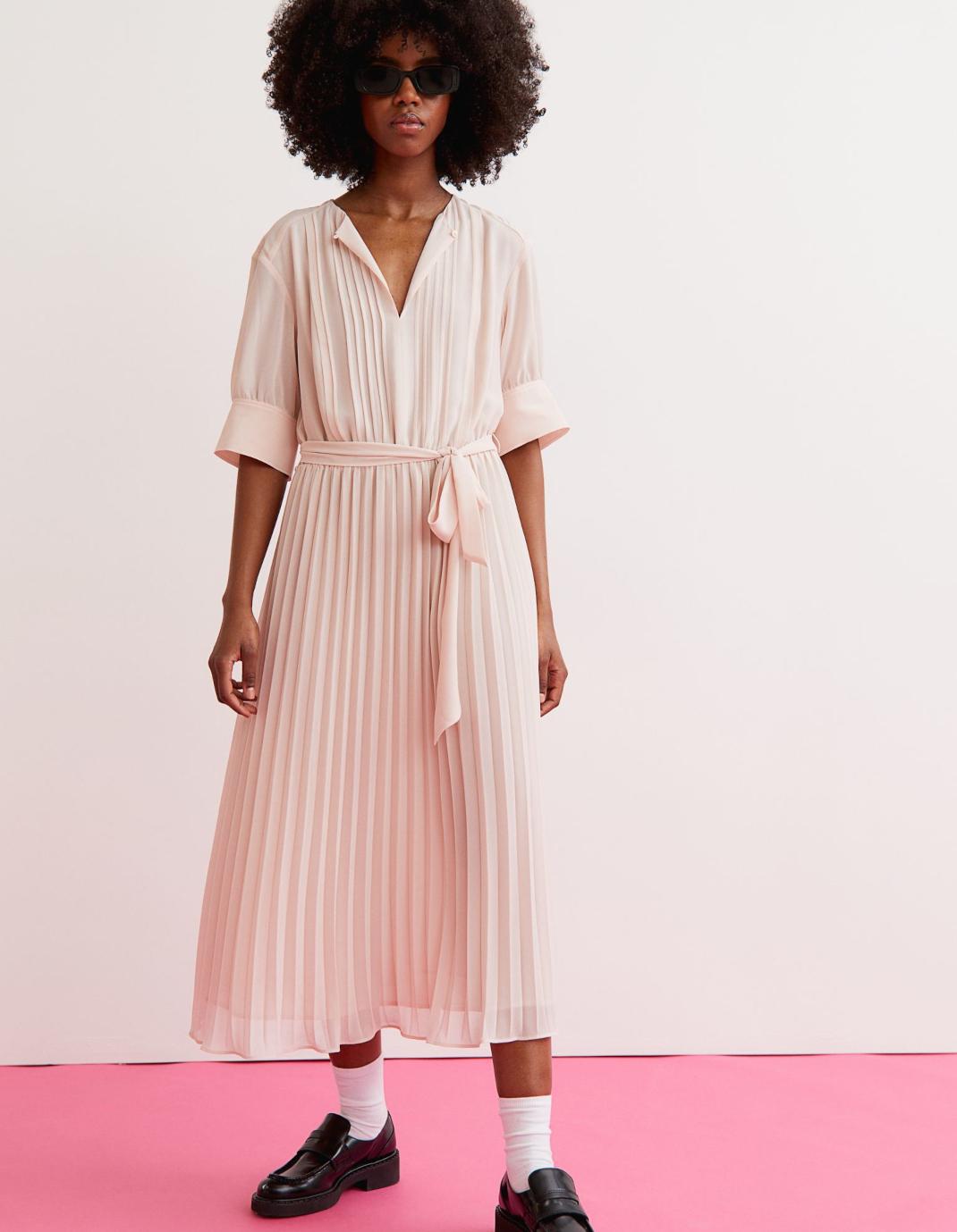 Το ρομαντικό πλισέ σε απαλό ροζ είναι ιδανικό για το φθινόπωρο και θα το συνδυάσετε με μποτάκια, ψηλές λευκές μπότες ή kitten heels για μια βραδινή έξοδο.