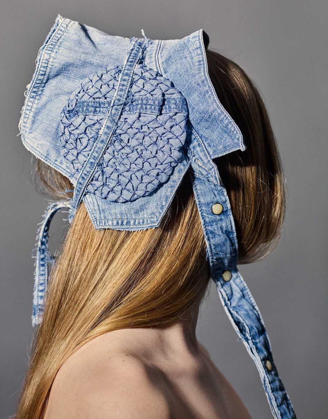 Ο σχεδιαστής υψηλής ραπτικής Karim Adduchi, οι σχεδιαστές μόδας Lisa Konno και Ferry Schiffelers, ο εικαστικός Victor de Bie, η δημιουργός καπέλων Yuki Isshiki (Demure Couture Hat) και η καλλιτέχνης/μοντέλο Iekeliene Stange (Splitter Splatter) ξεδίπλωσαν τη φαντασία και τη χειροτεχνία τους σε ένα σωρό από κομμάτια denim.