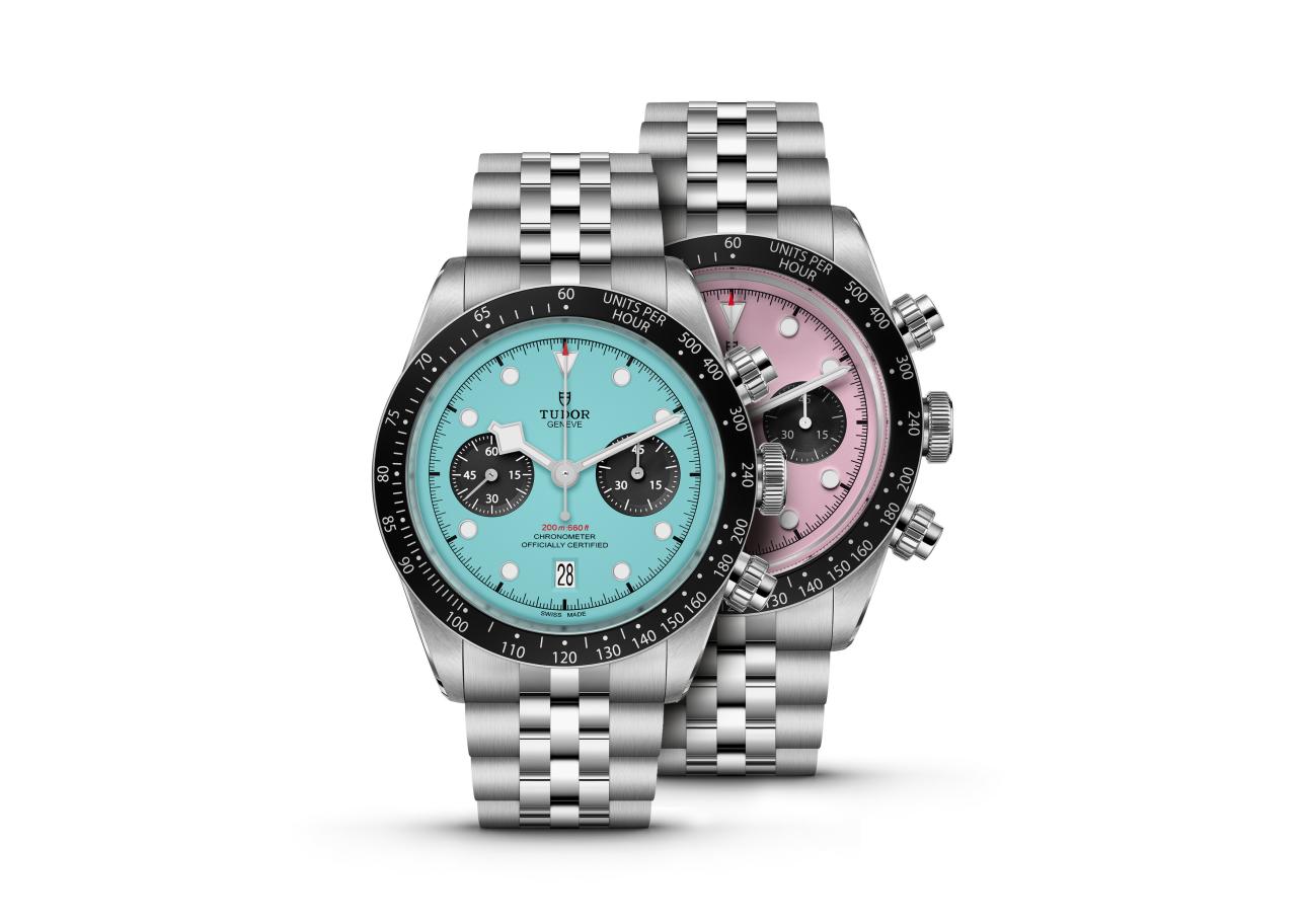 Με ένα νέο καντράν "Flamingo Blue", ο νεότερος σπορ χρονογράφος της TUDOR εκπέμπει -στην μέση του χειμώνα- την κλασική, ζέστη, γεμάτη ενέργεια ατμόσφαιρα της South Beach. Διαθέτει μηχανισμό χρονογράφου καθώς και μπρασελέ πέντε συνδέσμων με κούμπωμα T-Fit και αποτελεί την συνέχεια του Black Bay Chrono Pink με το ροζ καντράν.