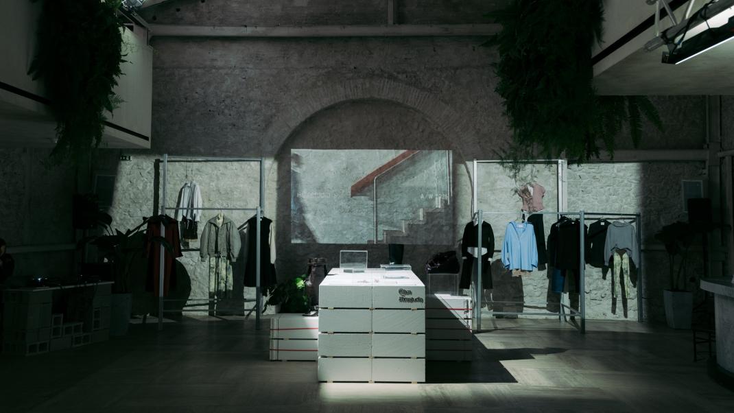 Ακατέργαστα δομικά στοιχεία μεταμορφώθηκαν σε εντυπωσιακές διακοσμητικές κατασκευές, σε πλήρη σύνδεση με τα ρούχα. Μια επιφάνεια από Ytong ανέδειξε τα signature αξεσουάρ, ενώ μια μεταλλική κατασκευή πρόβαλε τα iconic looks σε «brutalist» σκηνικό. Ο διάδρομος του Castor Place μετατράπηκε σε γκαλερί με editorial prints, θυμίζοντας σύγχρονο μουσείο, ενώ ο θρόνος από Ytong μπροστά από διαφανές fiber glass έγινε σημείο αναφοράς για content creation.