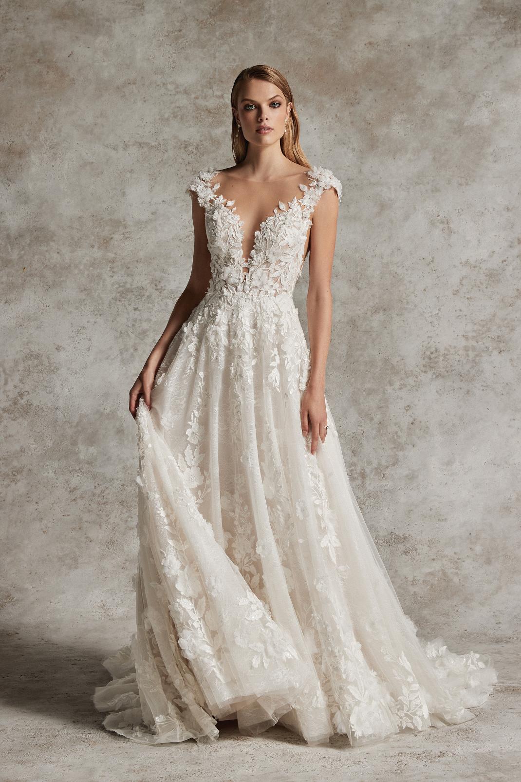 Είτε επιλέξετε ένα iconic νυφικό με αποκαλυπτική illusion λαιμόκοψη, πλαϊνά σκισίματα και ανοιχτή πλάτη, είτε μια αναγεννησιακή στράπλες δημιουργία με απαλό τούλι και δαντέλα (που αποτελούν το σήμα κατατεθέν αυτής της fashion forward συλλογής), πραγματικά θα κλέψετε την παράσταση την μοναδική ημέρα του γάμου σας, που τόσο υπομονετικά και με περίσσια αγάπη οργανώσατε!