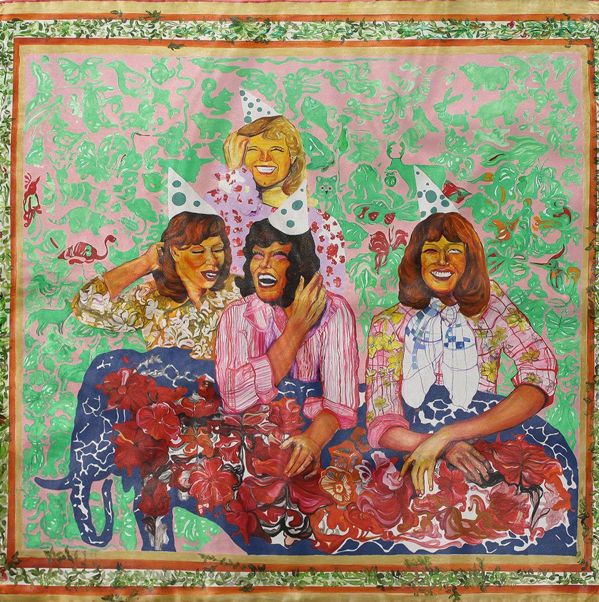 Δ. Μπ: Το The party έγινε έναν χρόνο πριν το Memoires d'un fou (που ο πραγματικός τίτλος του είναι Je rêvais de joies infinies, de voluptés qui sont du ciel, ονειρευόμουν χαρές ατελείωτες και ηδονές ουράνιες), μια φράση από το βιβλίο memoires d'un fou, απομνημονεύματα ενός τρελού του Γκυστάβ Φλωμπέρ και η αφορμή είναι μια εικόνα από ένα περιοδικό της δεκαετίας του 1960, της γιαγιάς μου. Πάντα με απασχολούσε η θέση της γυναίκας, η κατασκευασμένη εικόνα της και τα φιξαρισμένα πρότυπα και ήθελα να το σατιρίσω, να το σχολιάσω και να του δώσω μια άλλη διάσταση. Επίσης λατρεύω τα μοτίβα και την ιστορία τους, τις ταπισερί και τα περίτεχνα υφάσματα σε βάθος αιώνων, τον απίστευτα όμορφο τρόπο που ήταν φτιαγμένα, και έτσι έκανα μια αναφορά σε αυτό φτιάχνοντας ένα είδος σύγχρονης ταπισερί.