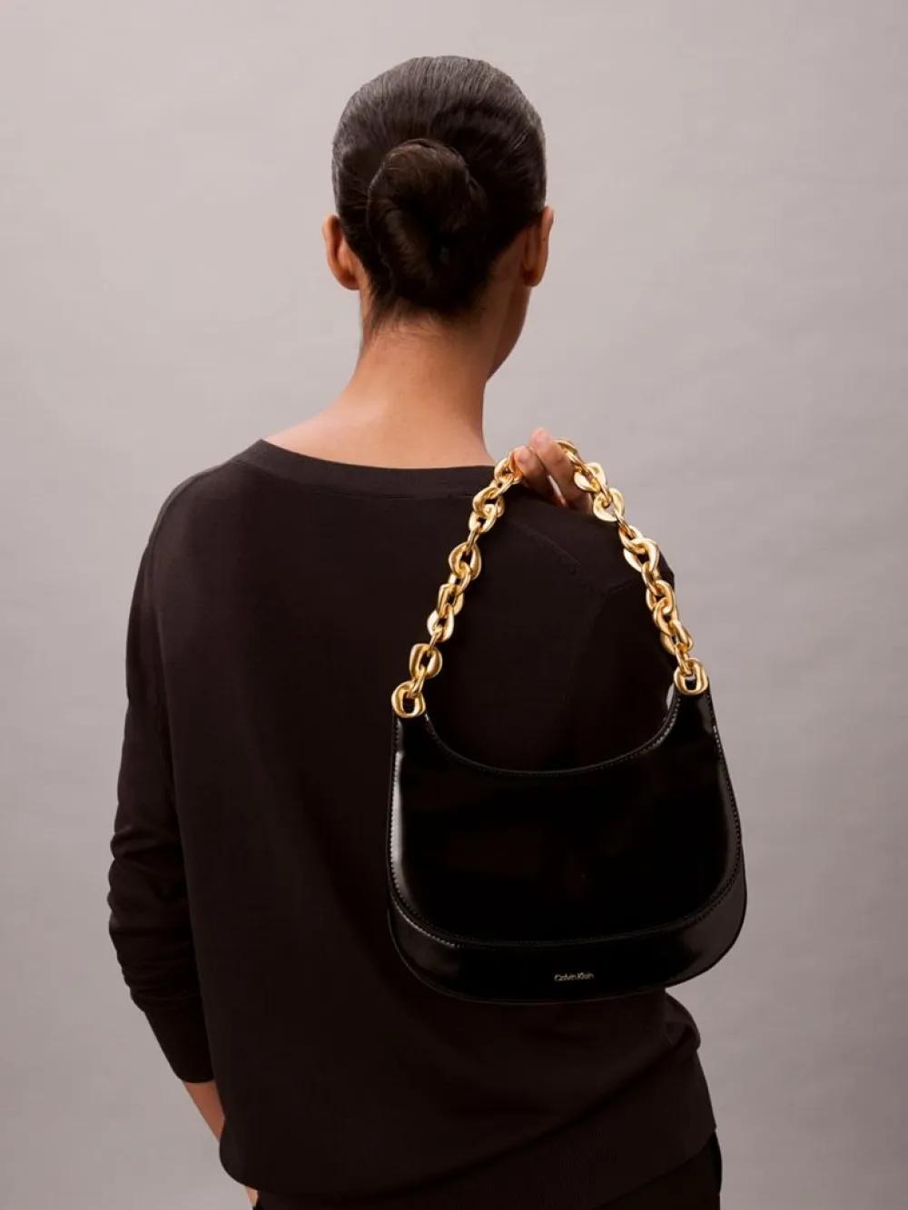 Μαύρη τσάντα με χρυσή αλυσίδα Calvin Klein/ Δείτε εδώ