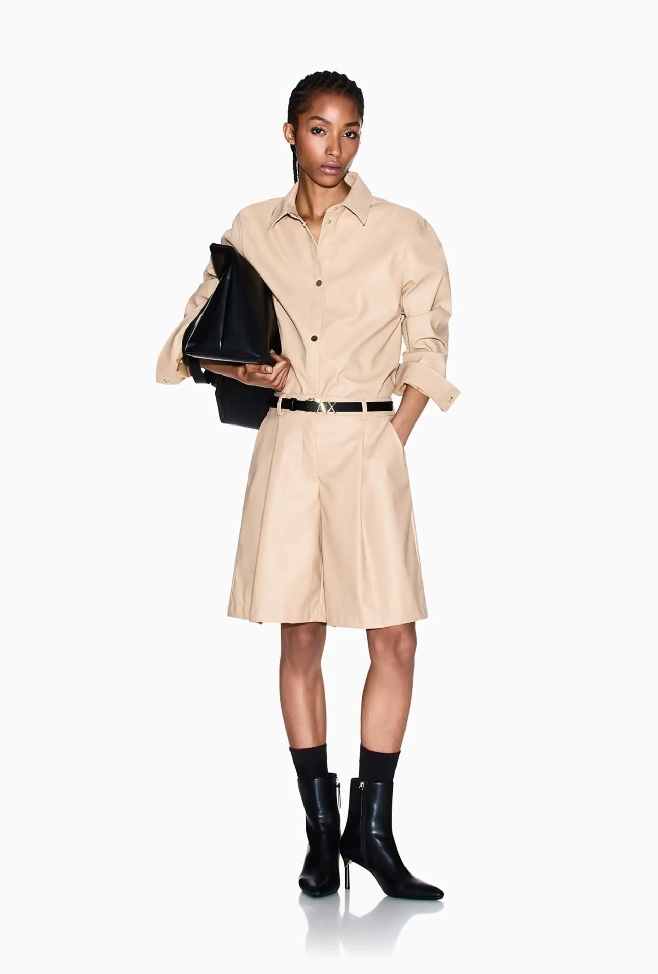 Αν θες να πετύχεις το πιο ενημερωμένο city look, επένδυσε σε βερμούδες σε γκρι μελανζέ ή μαύρο, συνδυασμένες με καπαρντίνα ή μάλλινο παλτό σε ανδρική γραμμή. Για πιο τολμηρές επιλογές, υπάρχουν και εκδοχές σε δέρμα ή με πιέτες τύπου culotte, που δίνουν περισσότερο όγκο και κίνηση. Στην ουσία, η χειμερινή βερμούδα λειτουργεί όπως μια φούστα -αλλά με πιο σύγχρονο και πρακτικό χαρακτήρα.